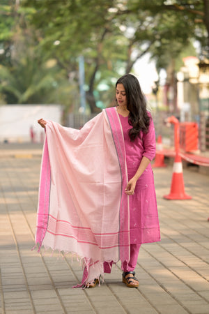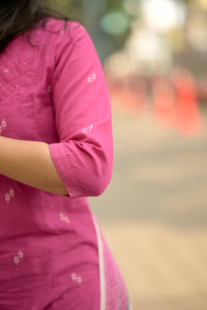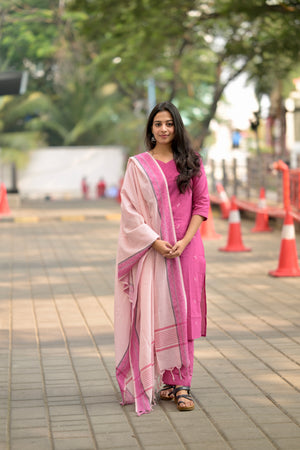 Mohini ( pink ) - organic handloom cotton suit set in pink colour