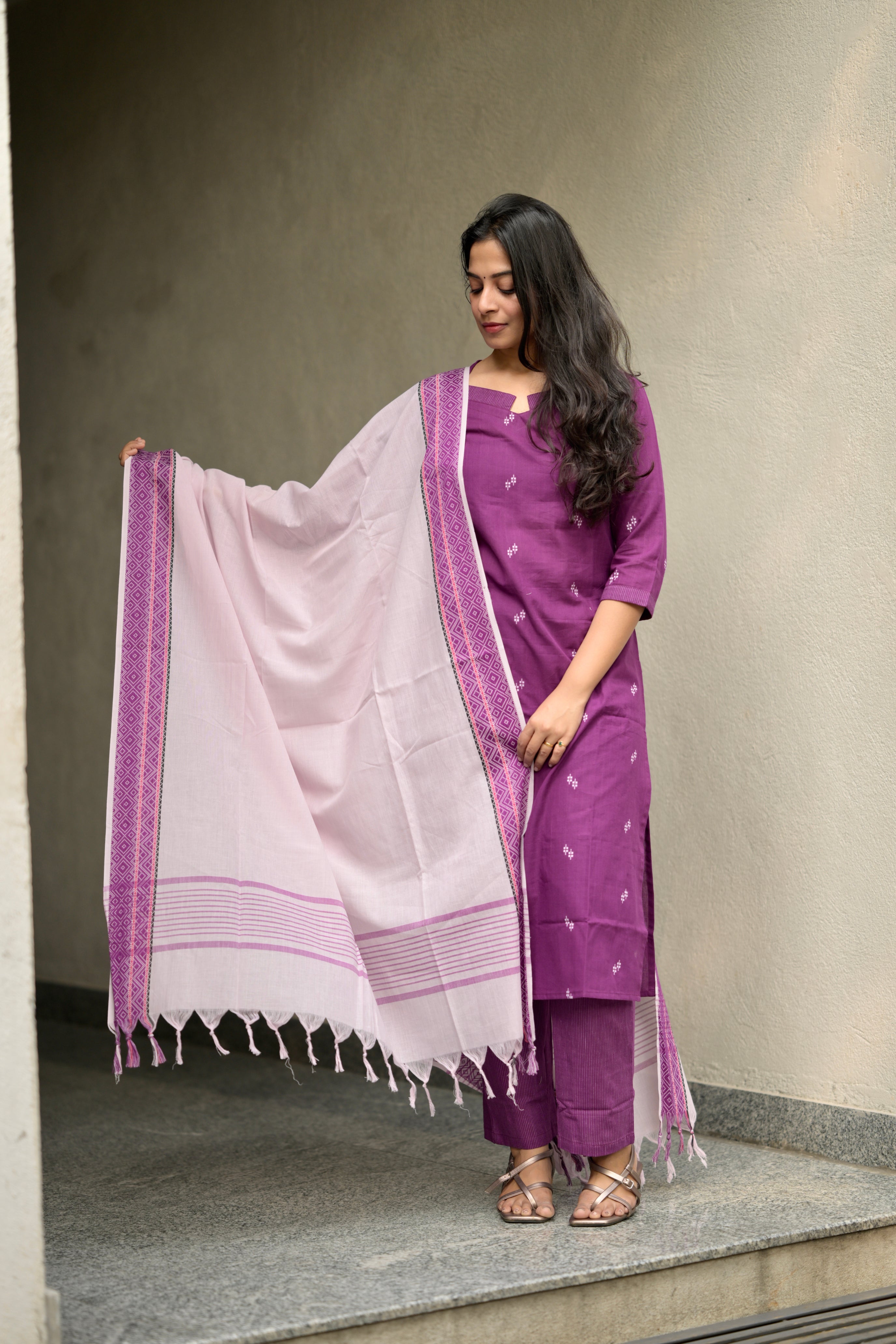 Mohini ( purple ) - organic handloom cotton suit set in purple colour