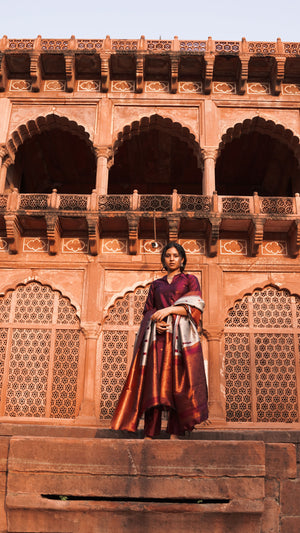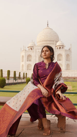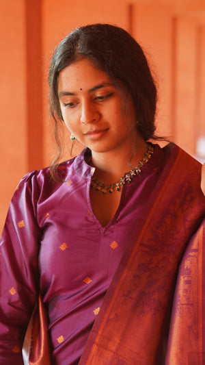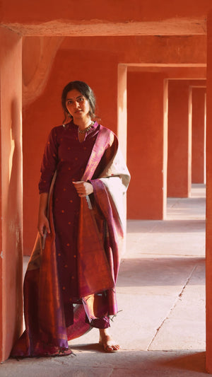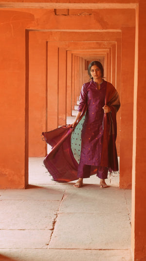 Nakshathra (purple ) -semi kanchi 3 pc vegan silk suit set purple