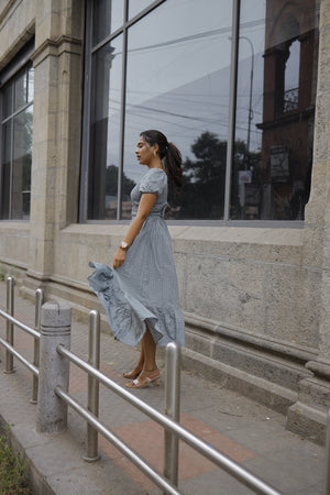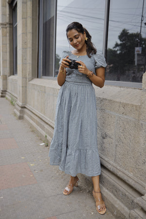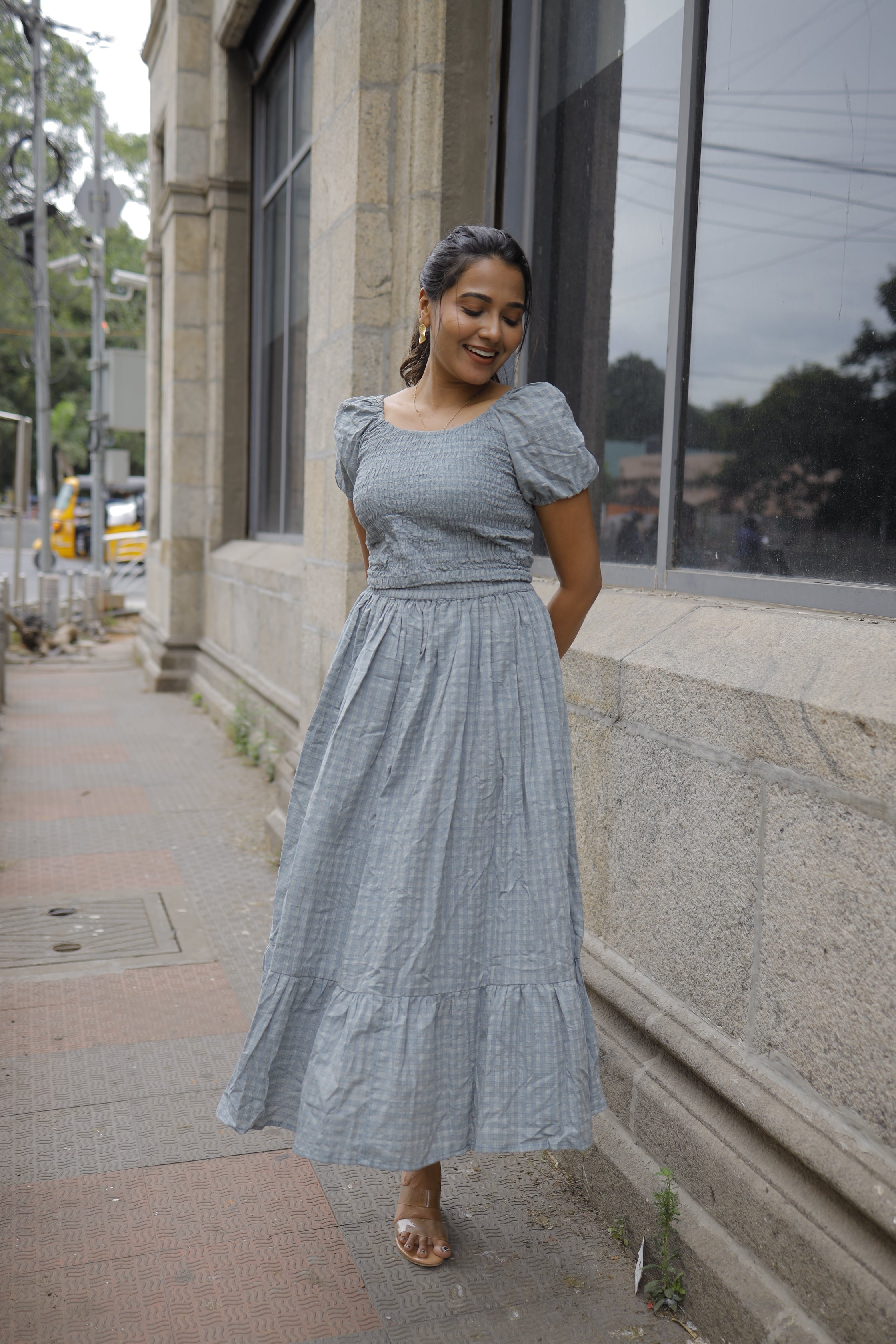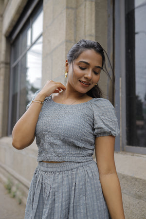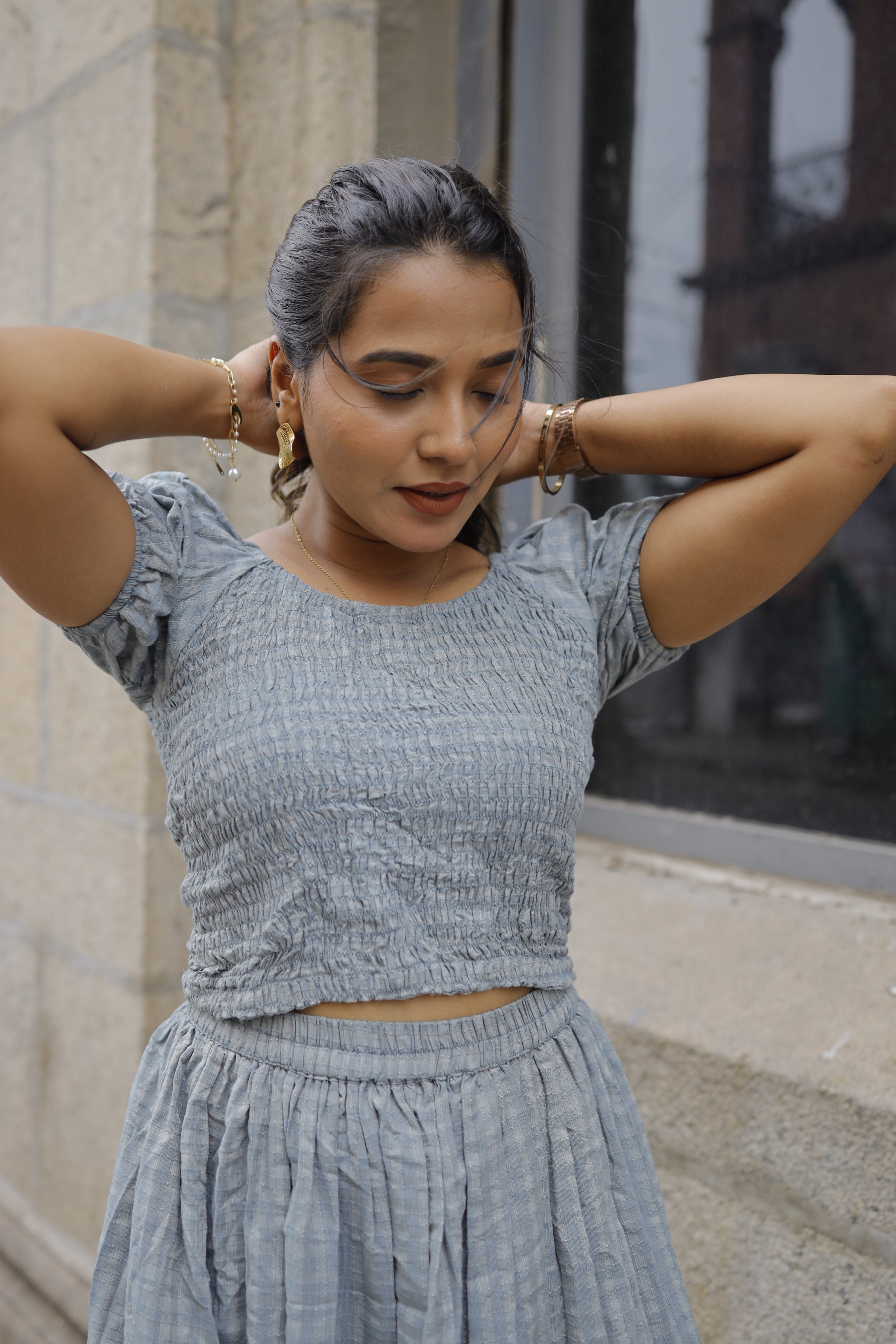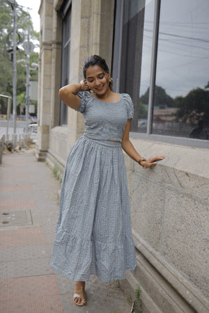 Natasha ( grey ) - checked handloom cotton skirt set in grey
