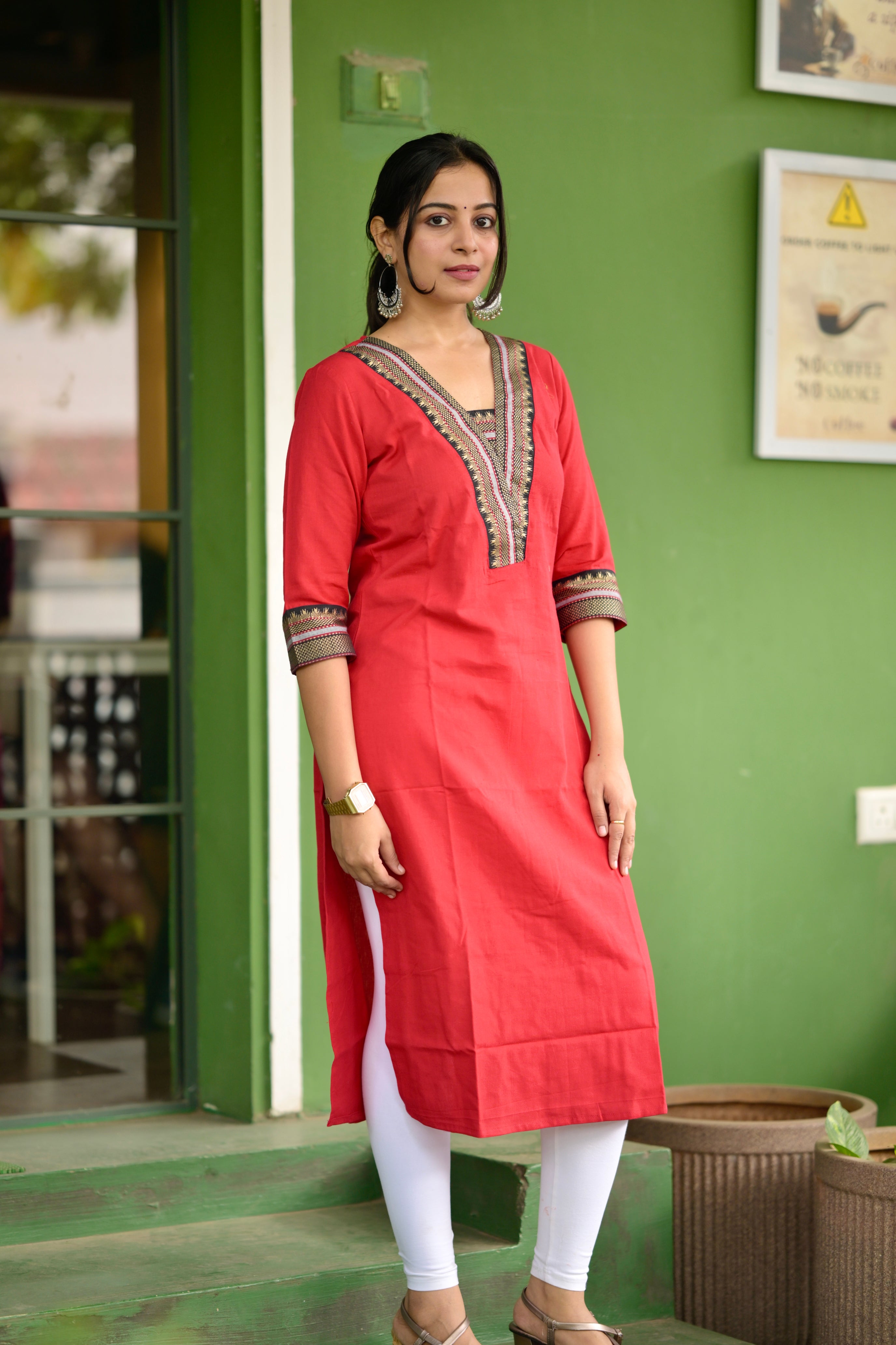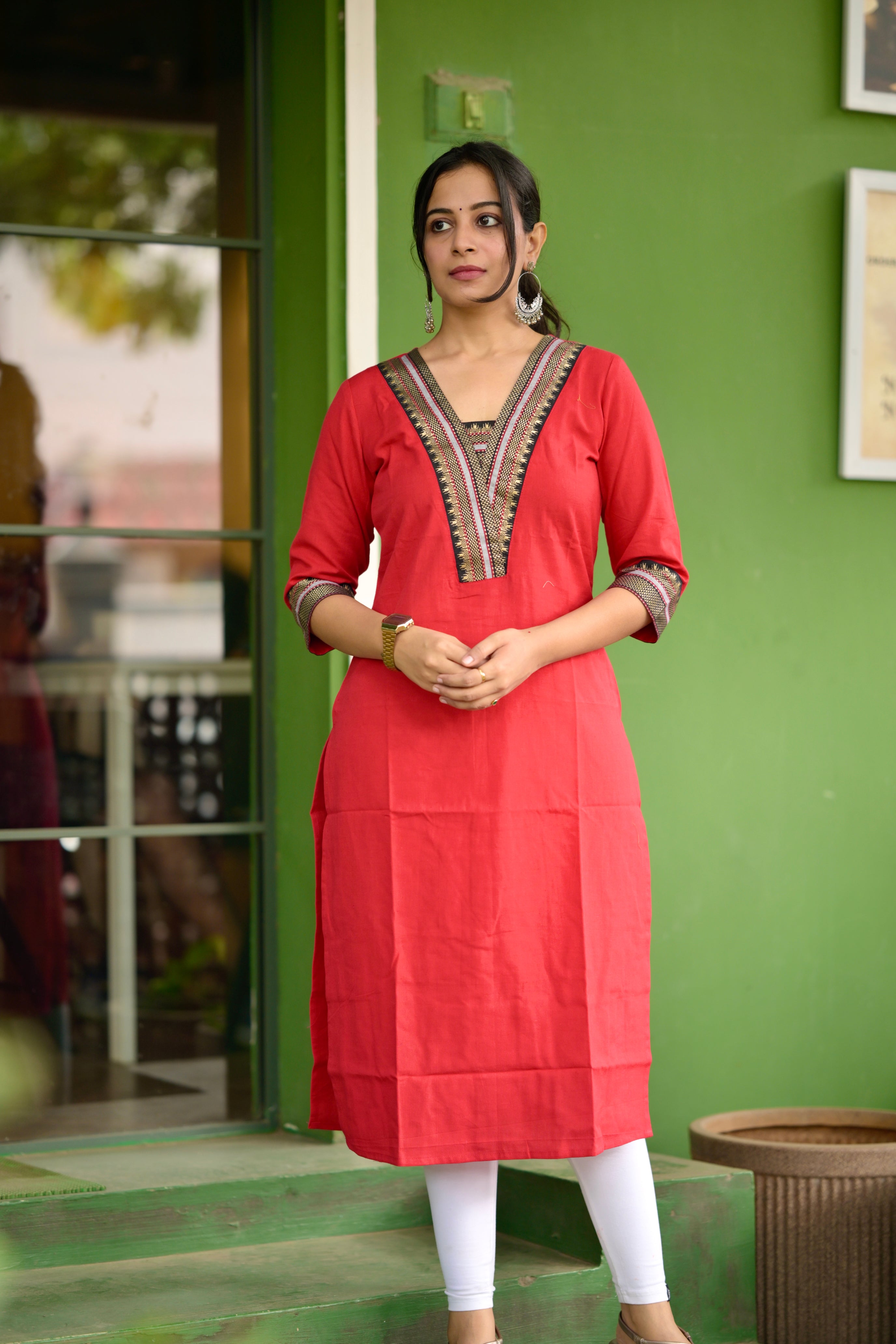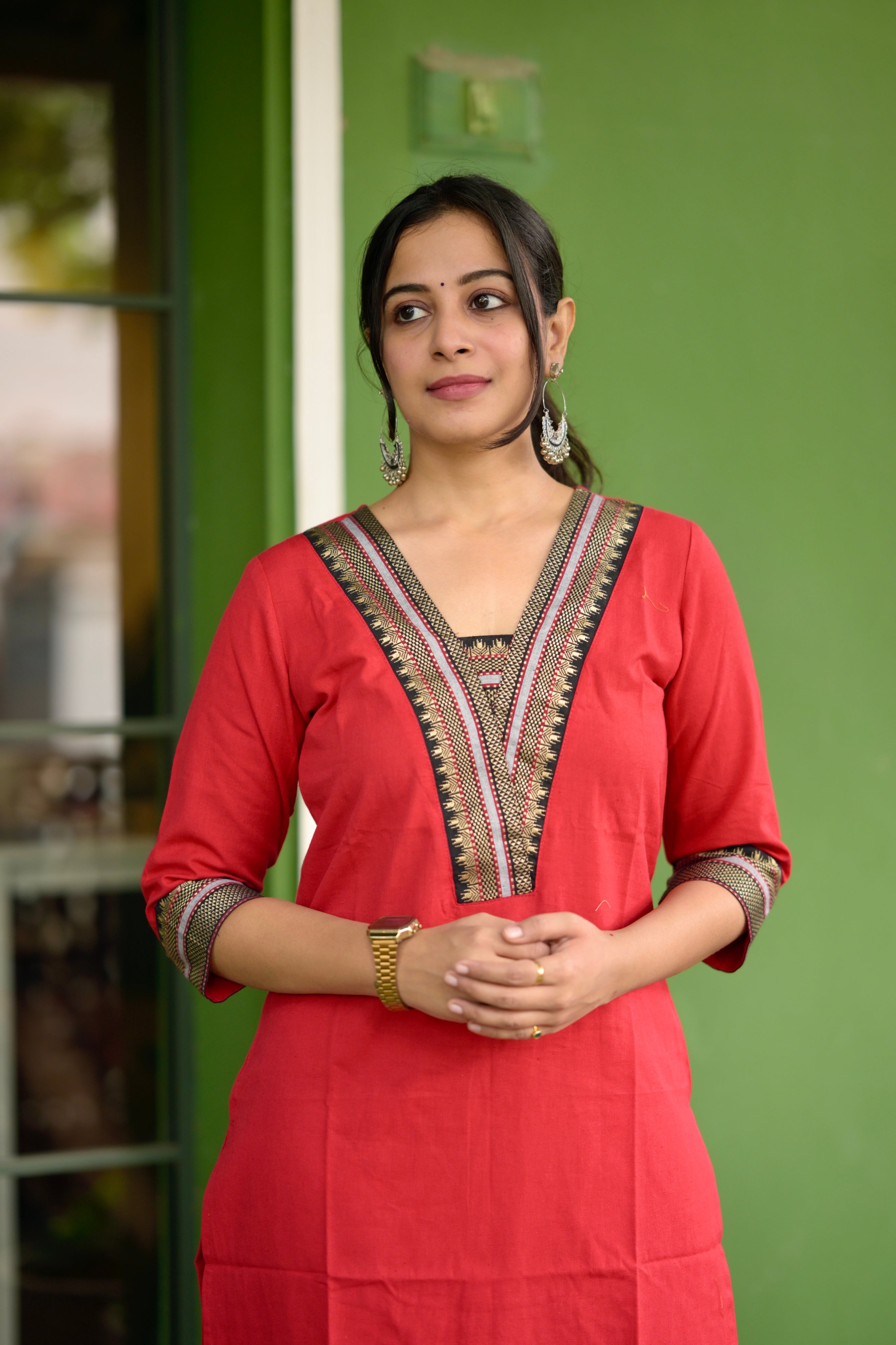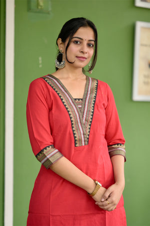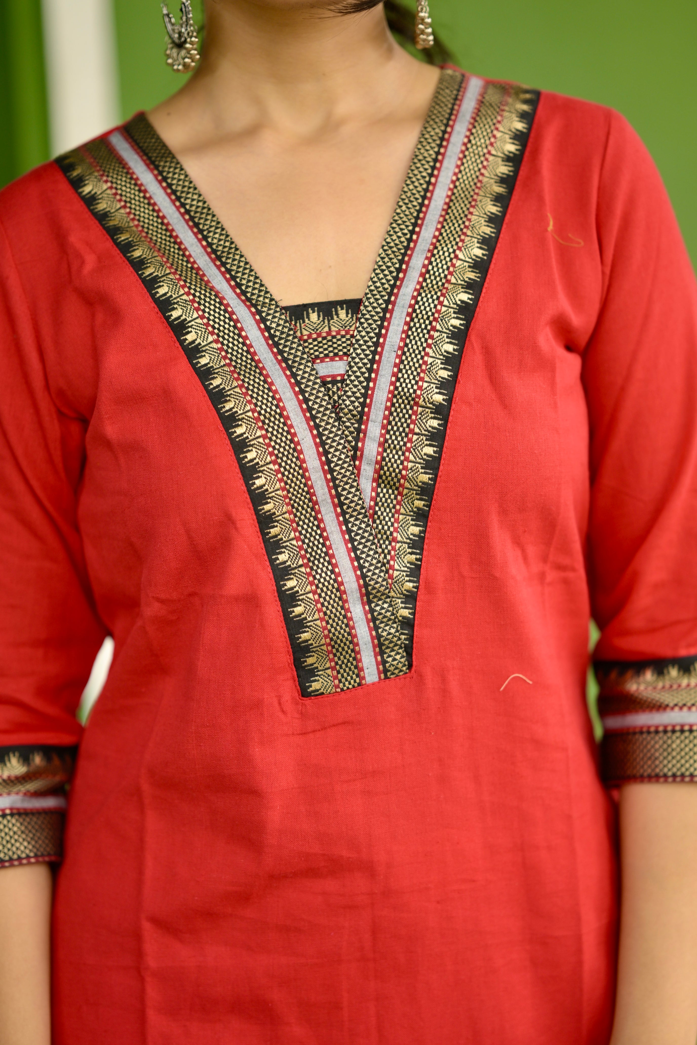 Nayanthara #1 -handloom cotton kurti in red & black with temple border
