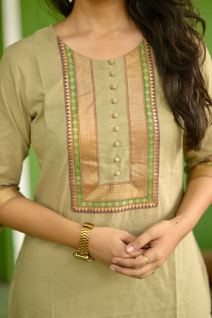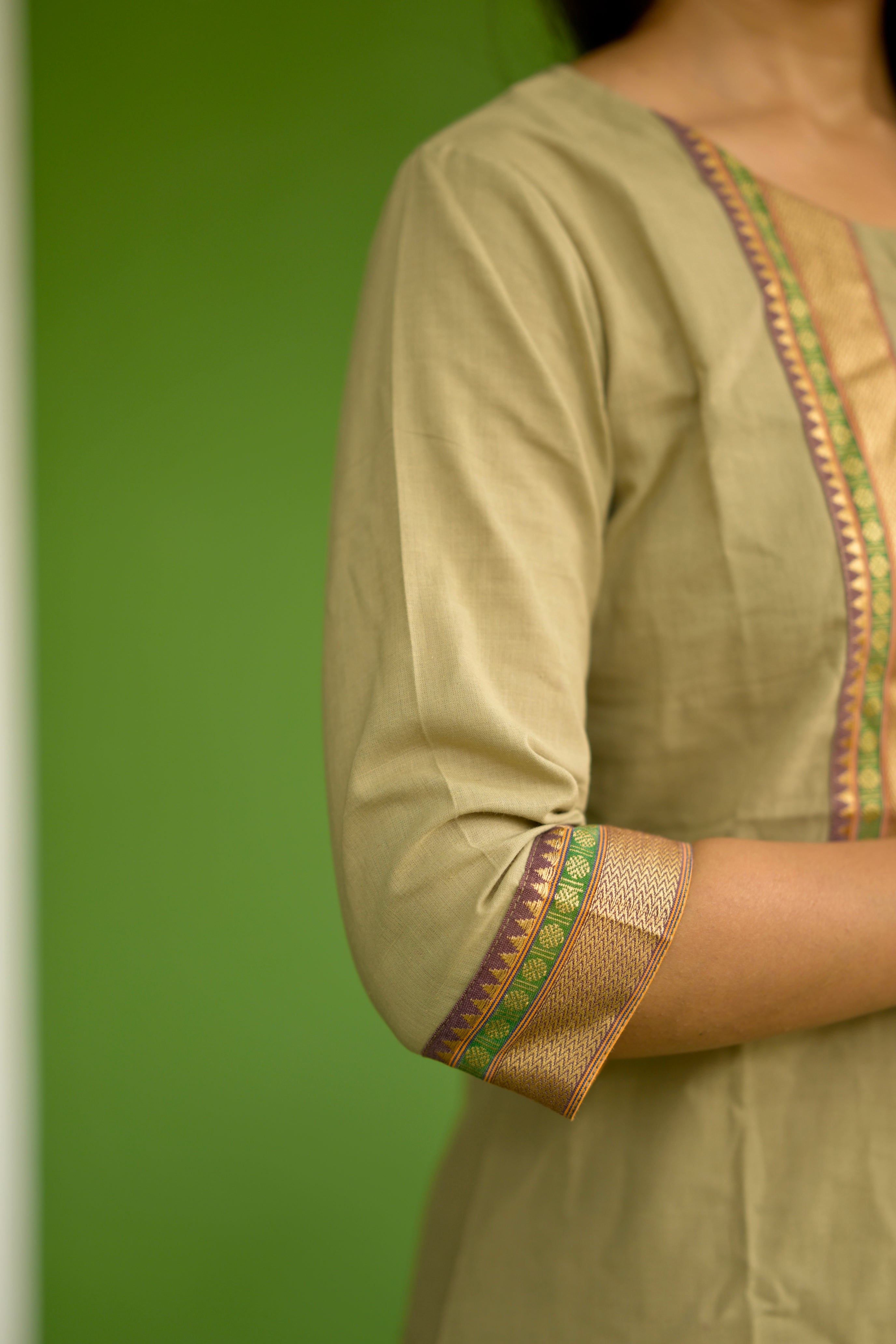 Nayanthara #10 -handloom cotton kurti in olive green