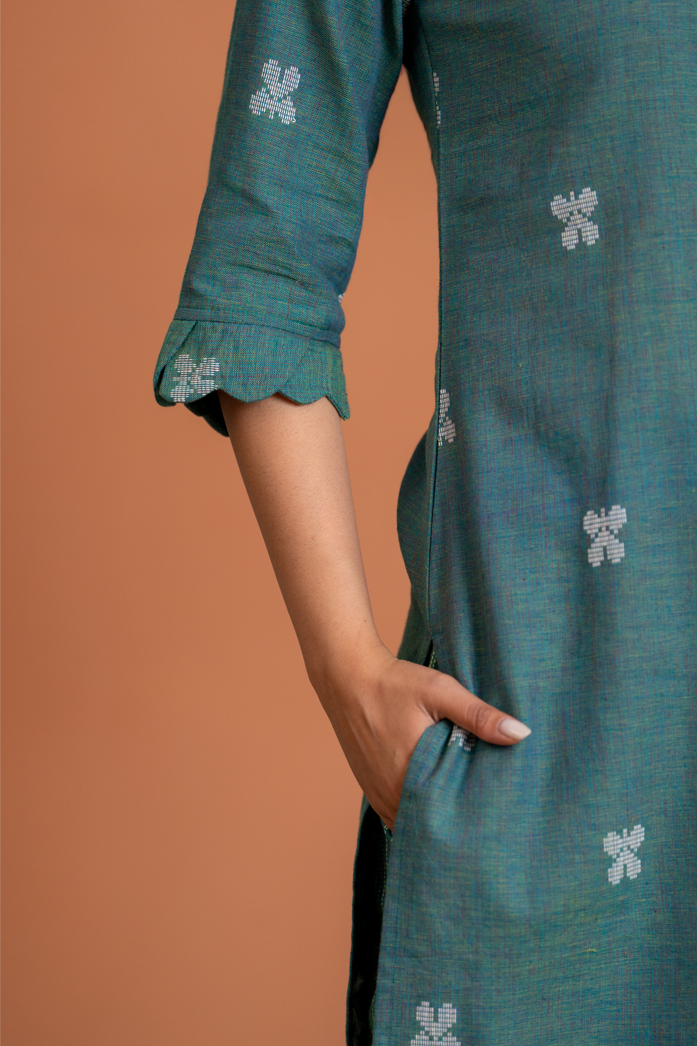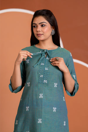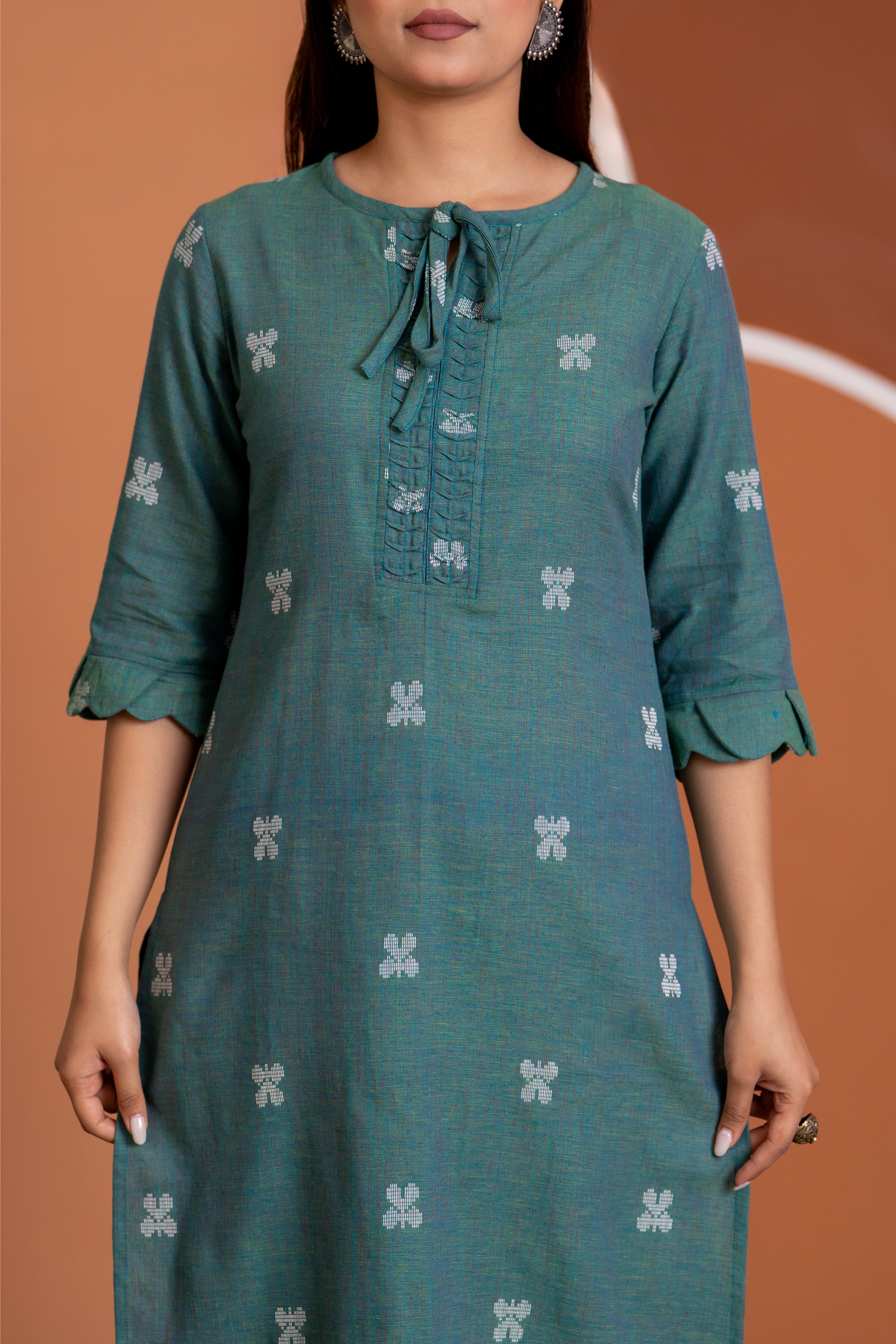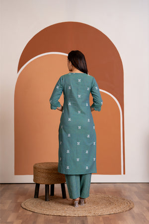 Mahikha - butterfly handwoven handloom cotton kurta set in sea blue colour