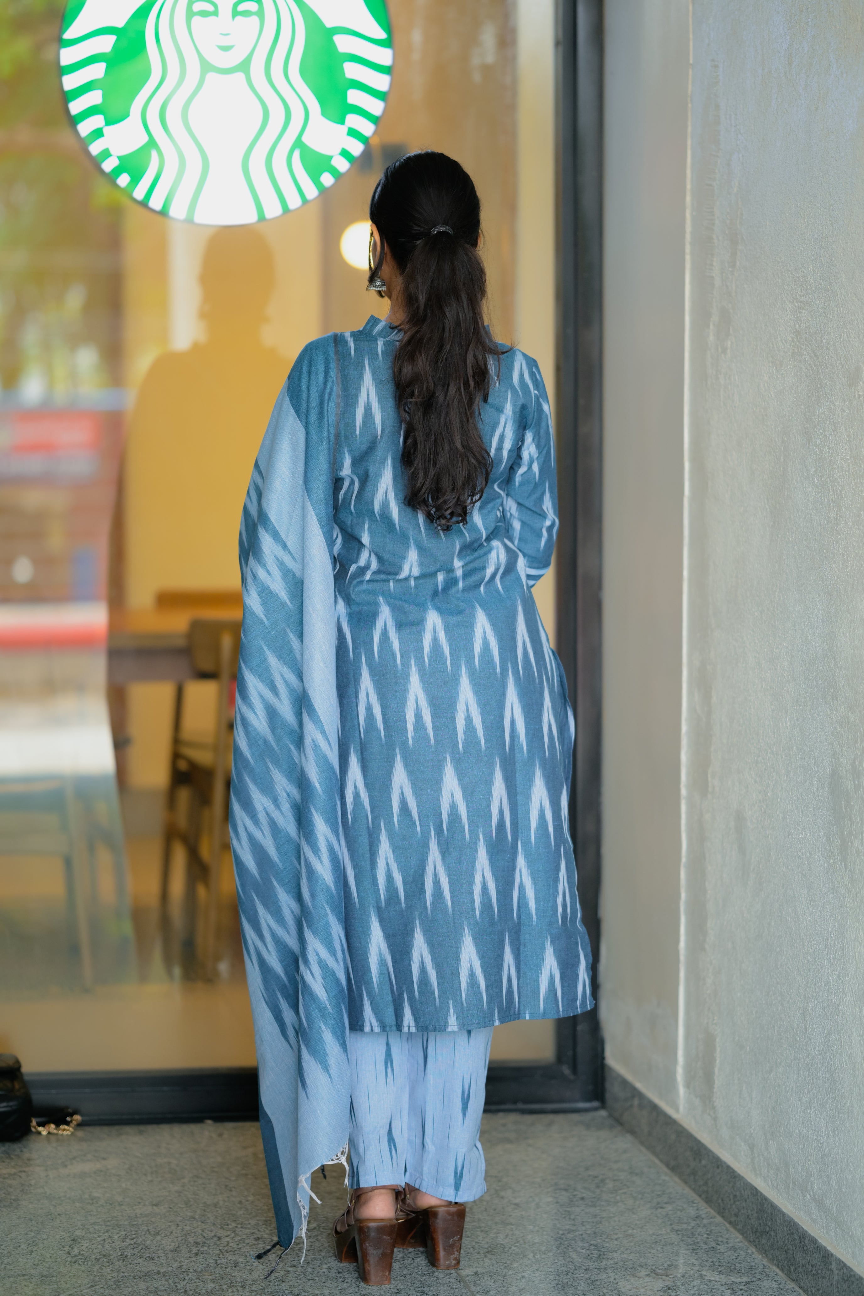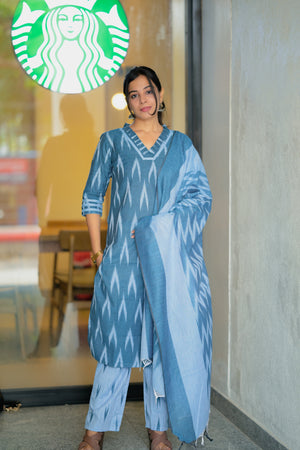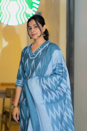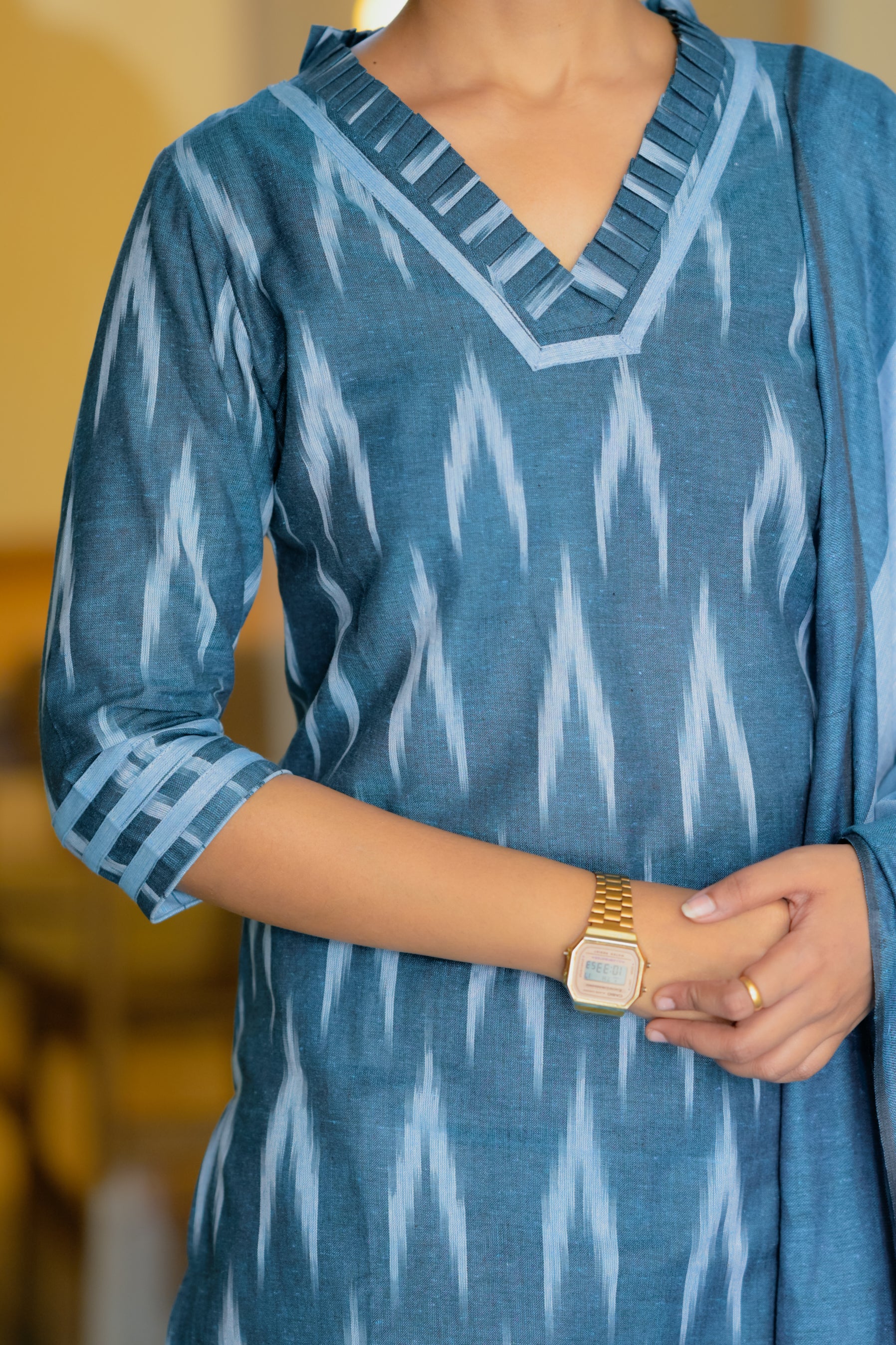 Tejasvi (blue) - handloom ikkat cotton suit set in blue