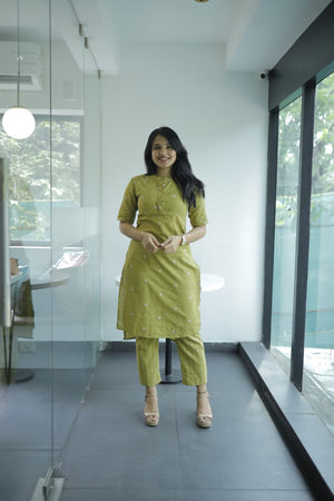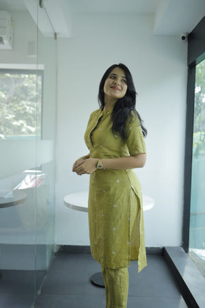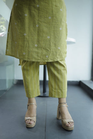 Nirva ( green coord set )- Handloom cotton kurta set in leaf green