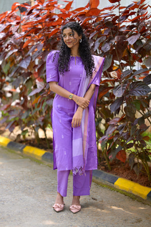 Padmashree ( lavender) - handloom cotton suit set in lavender