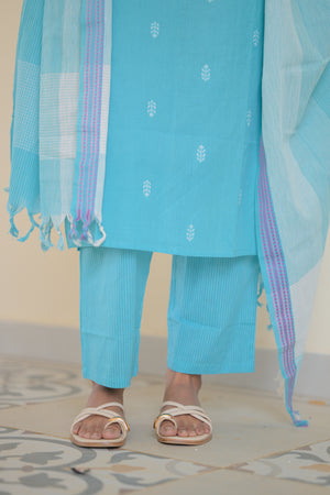 Padmashree ( sky blue )- handloom cotton suit set in sky blue