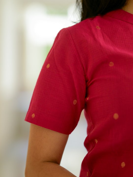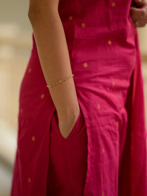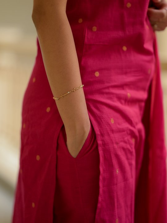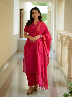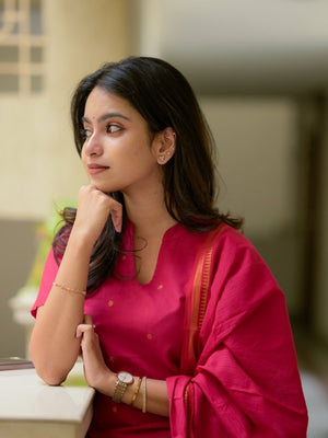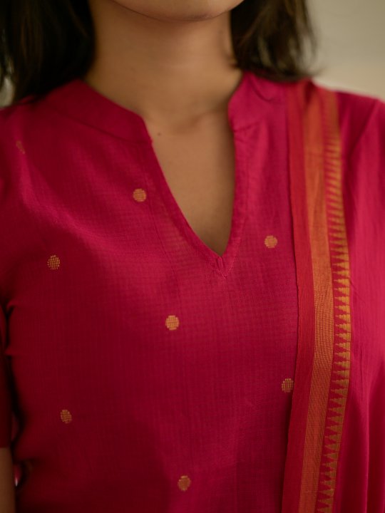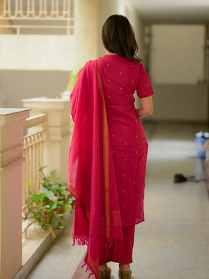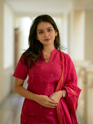 Parvathy ( magenta ) - handloom cotton suit set with gold woven buttas in magenta