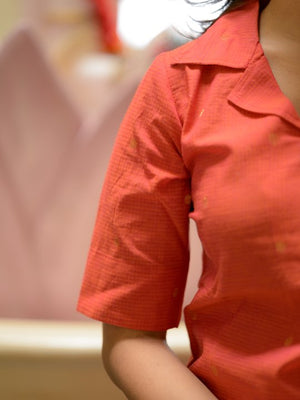 Parvathy ( orange ) - handloom cotton suit set with gold woven buttas in orange & pink