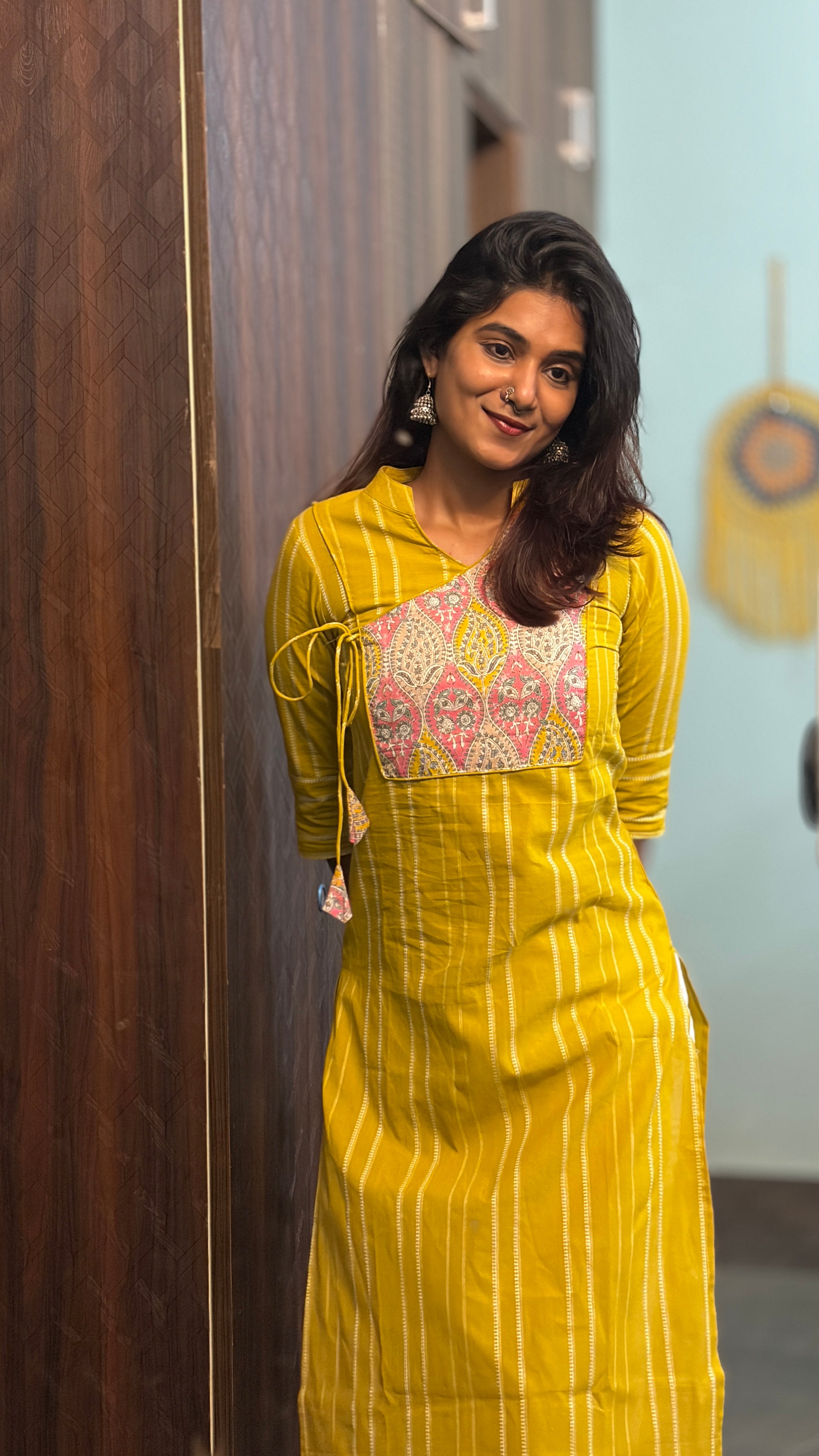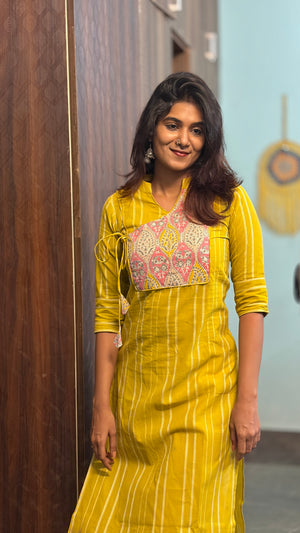 Pattern kurti 24- Handloom cotton kurti in yellow & white