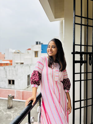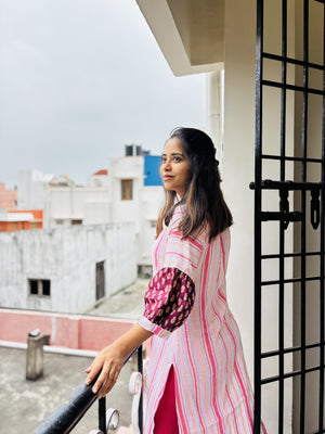 Handloom cotton kurti in off white , 3/4th sleeves,with round neckline which is perfect for office/college.