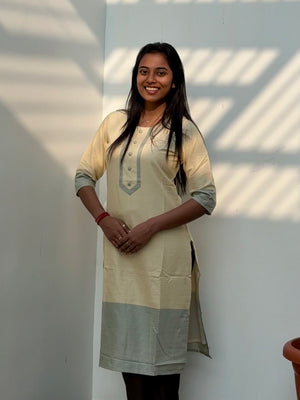 Pattern kurti 55- Handloom cotton kurti in pale yellow