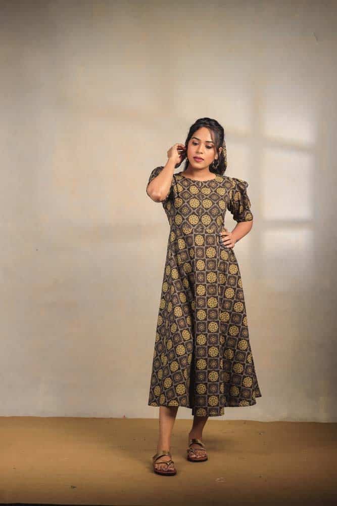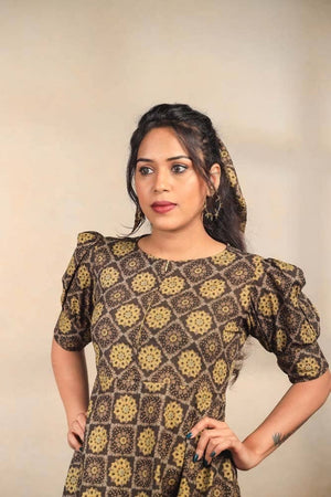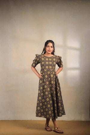 philipa - ajrakh hand block ajrakh printed cotton gown in black ( feeding friendly)
