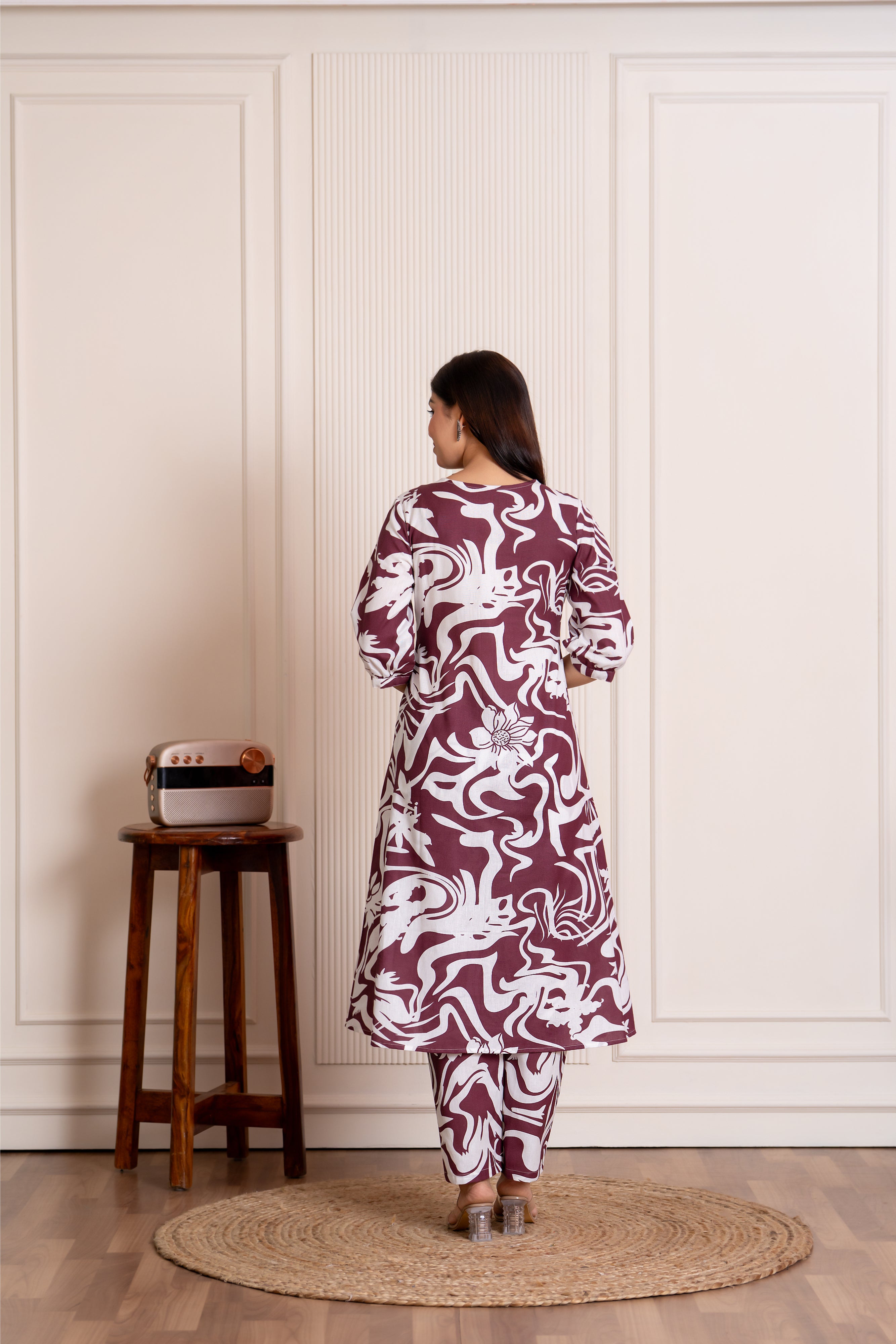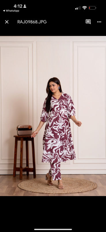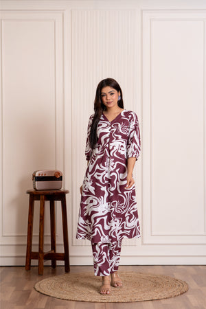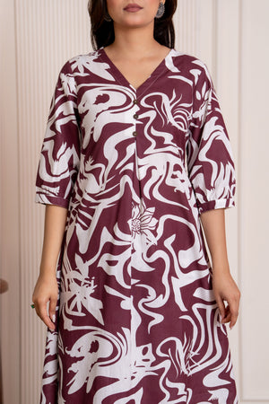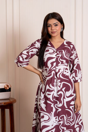 Prarthna ( wine) - abstract printed A line cotton flex kurta set
