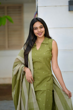 - Design : sleeveless kurta (with attached 11 inch sleeves inside), collar neck, trousers have functional pockets