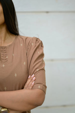 - Design : puffed sleeves with round neck, trousers have functional pockets