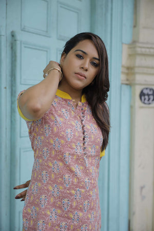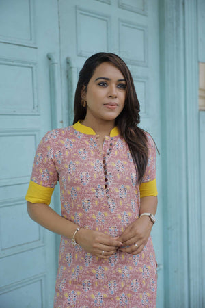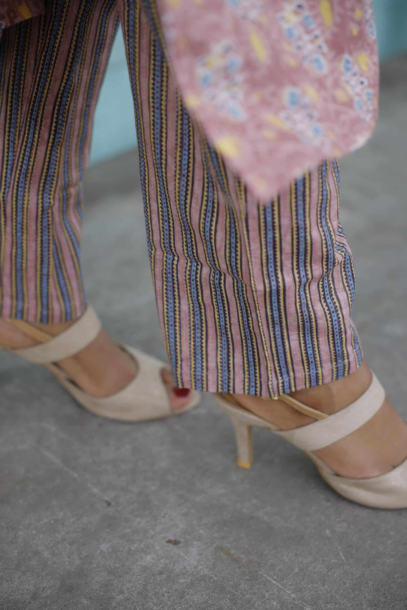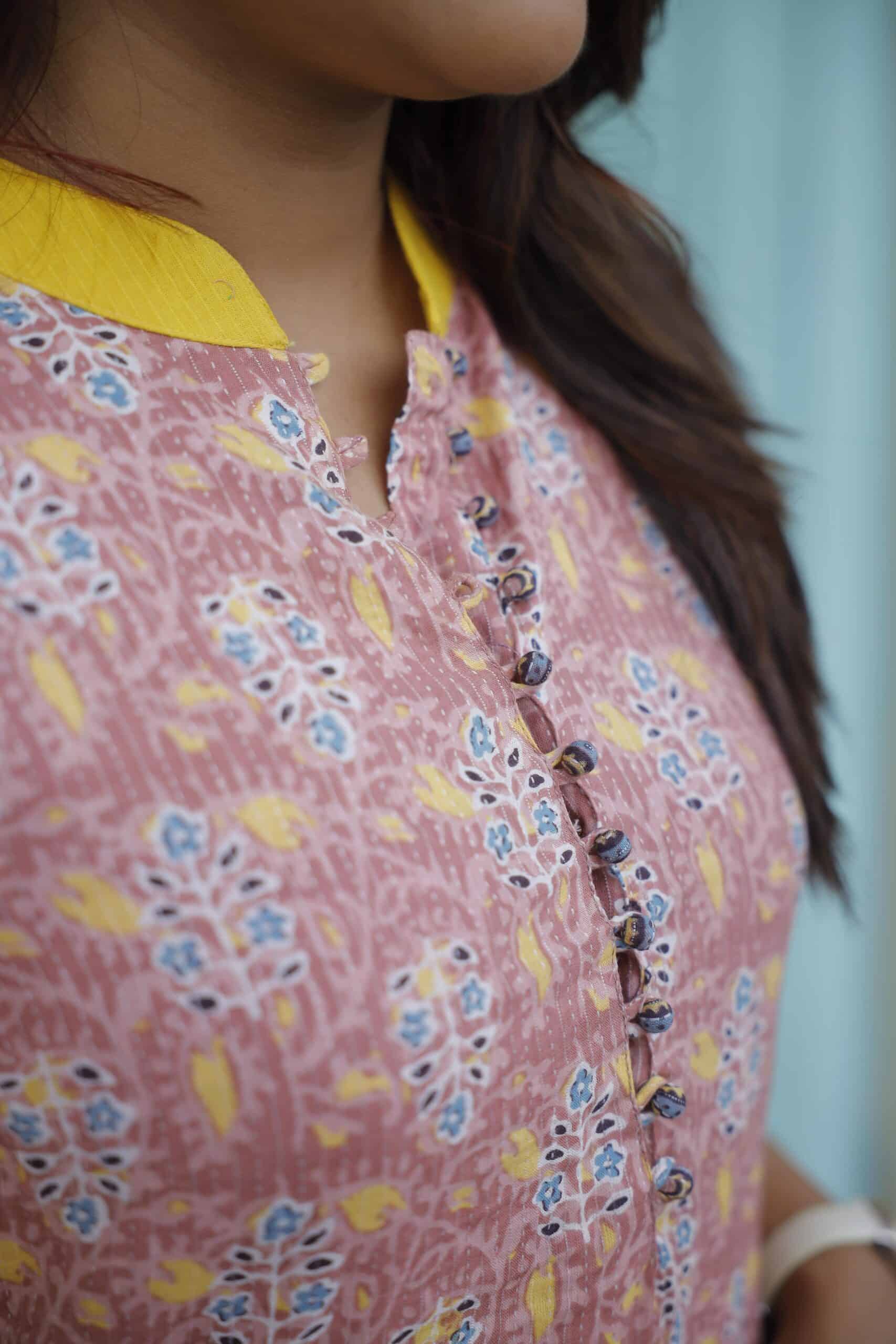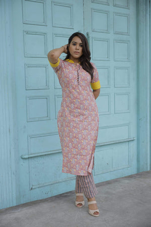 - Organic cotton katha embroidered kurta with a smart neck detailing and elbow sleeves and comes with matching trousers with functional pockets
