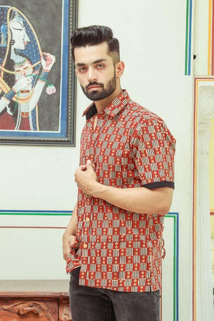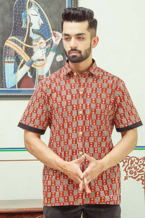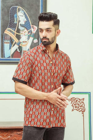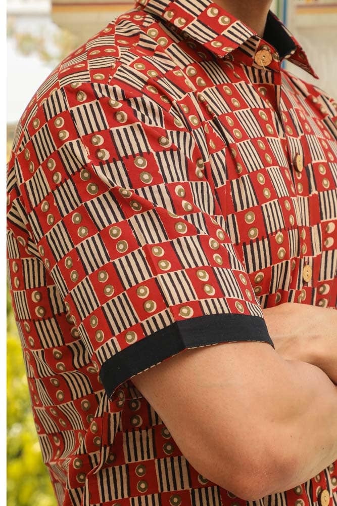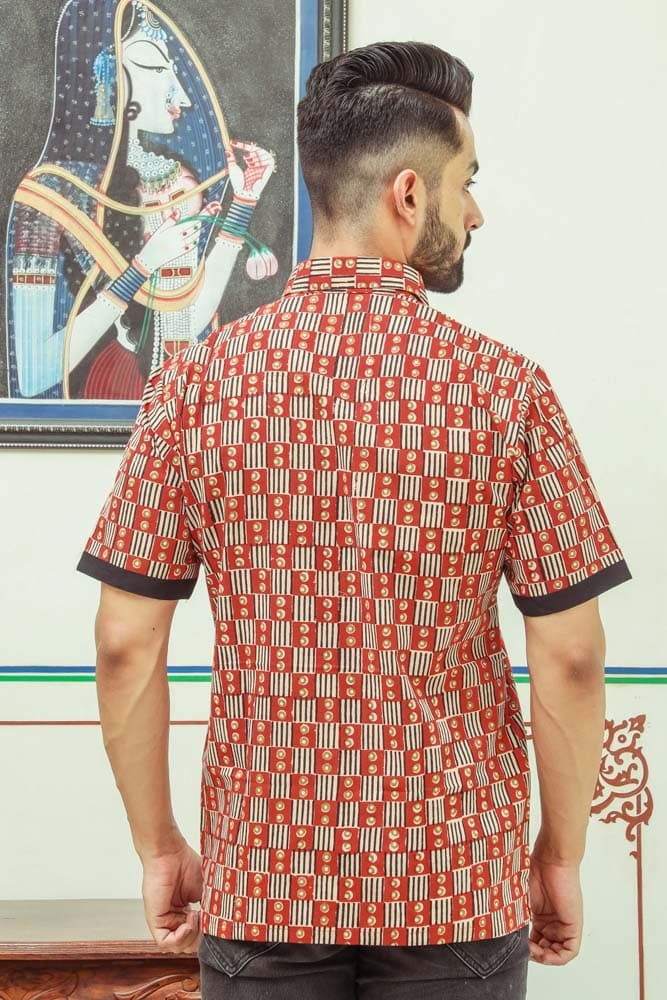 rusty red cotton shirt - handblock printed organic cotton shirt in red
