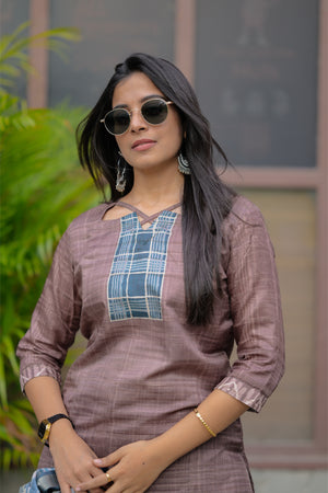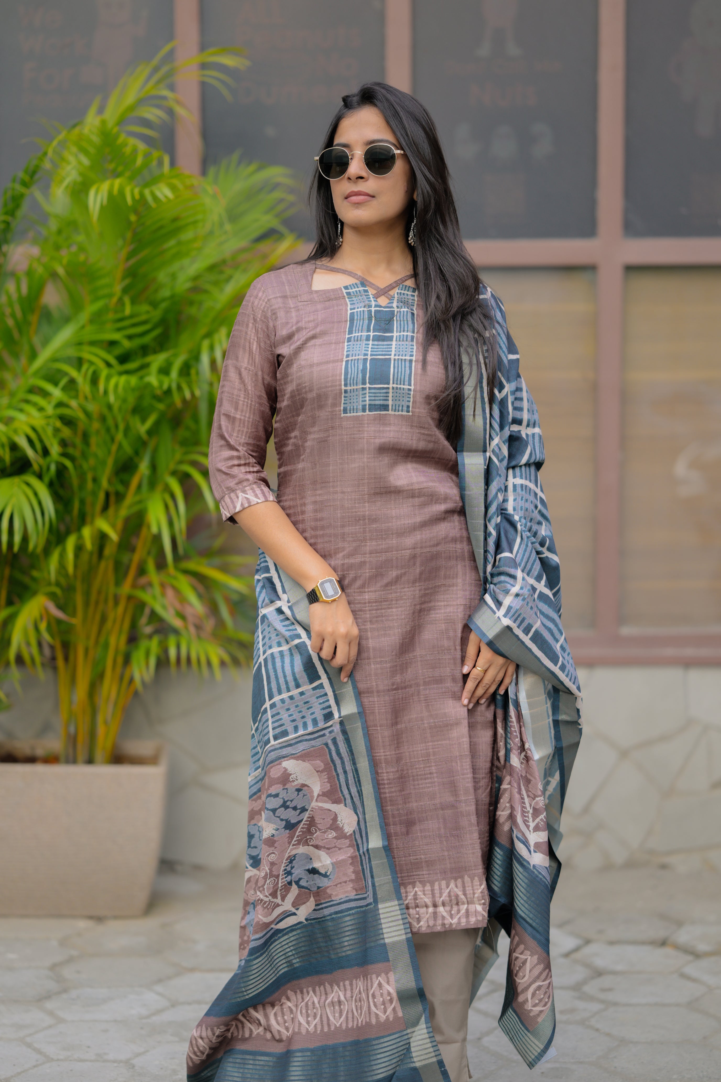 Sakhi - pure tussar silk kurta with dupatta in dusty mauve and blue colour