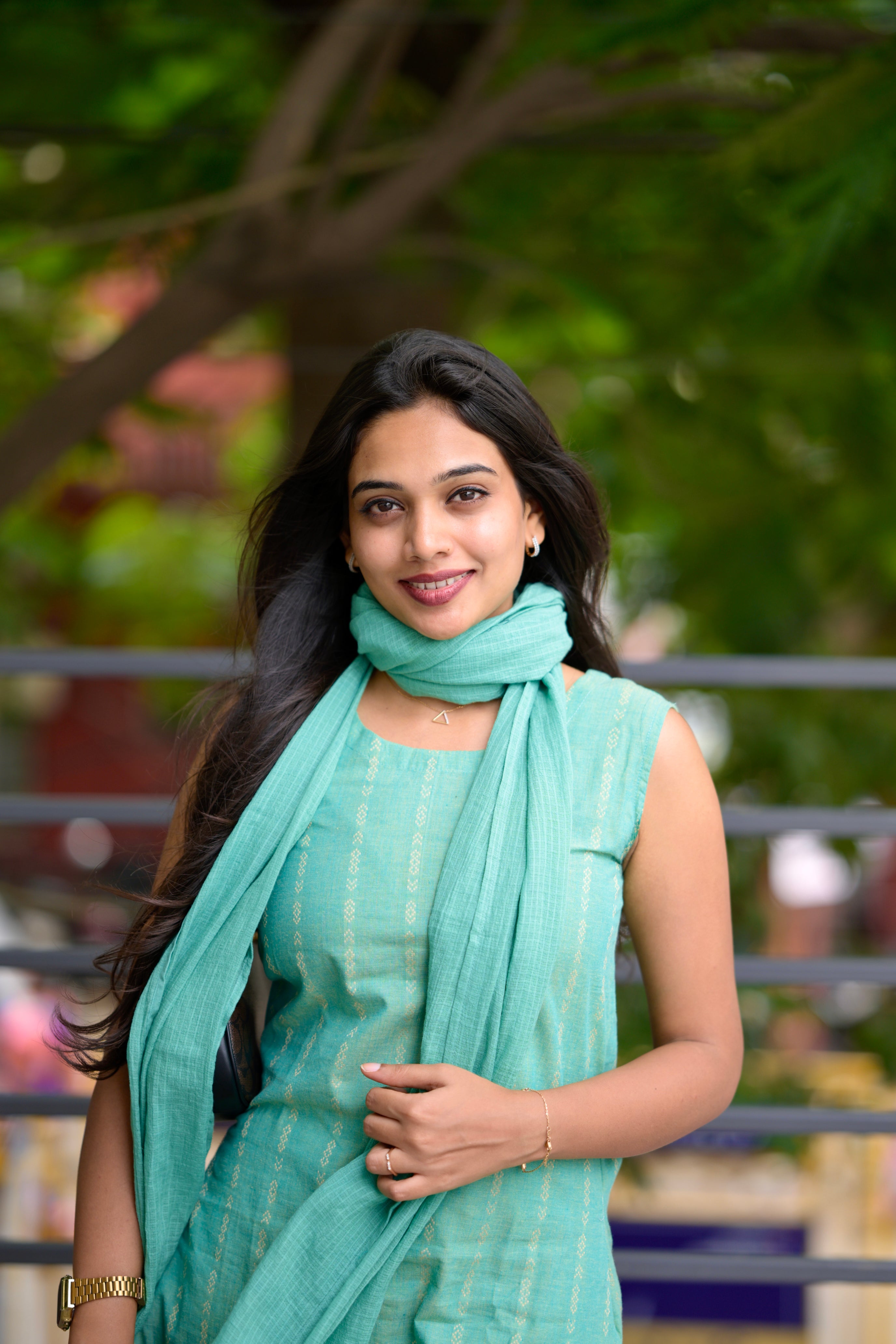 Sameira (green ) - pink handloom cotton halter neck coord set with a stole