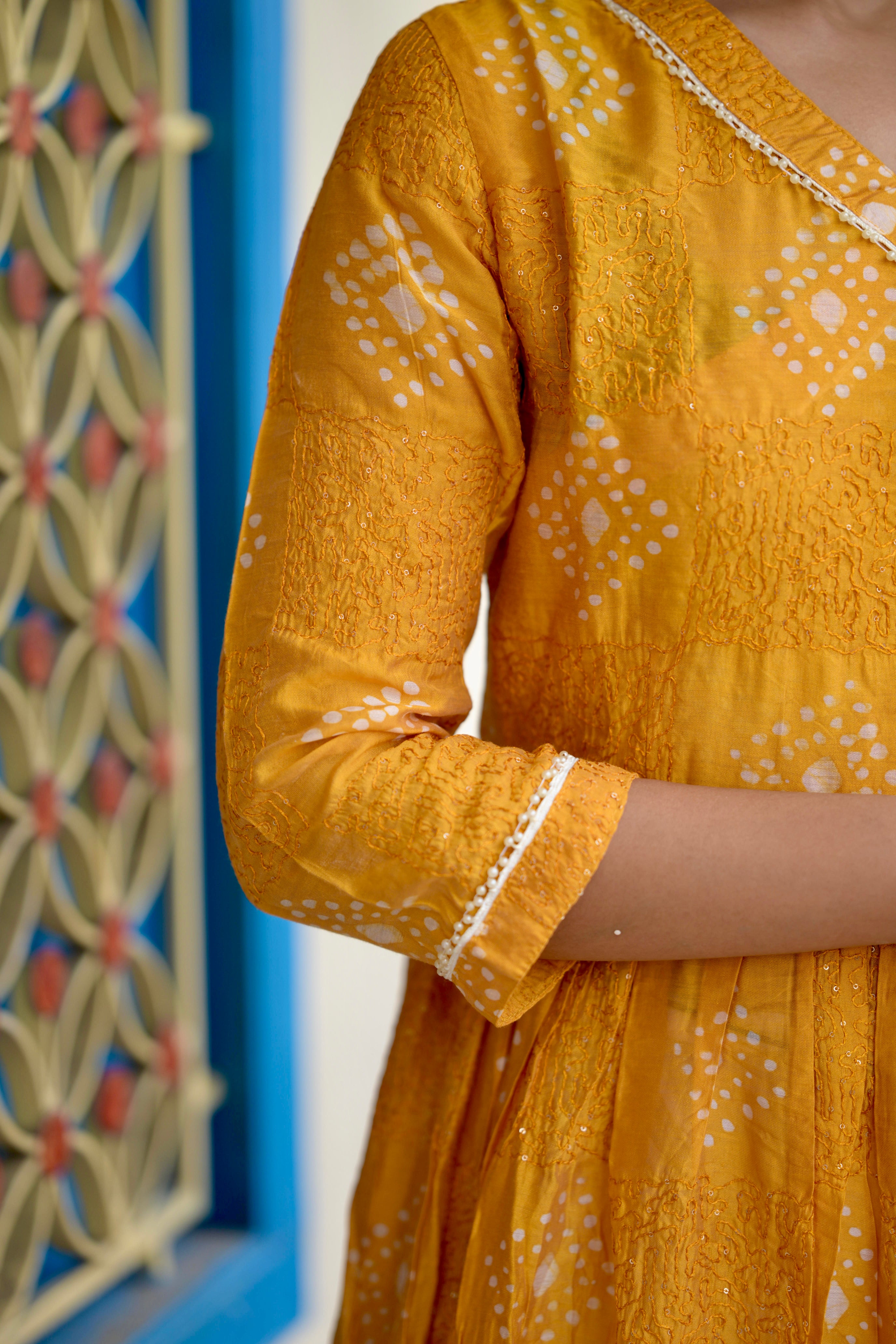 Samyuktha - muslin silk gown with hand embroidery in golden yellow