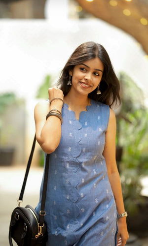 Sarika - handloom cotton kurta set in denim blue