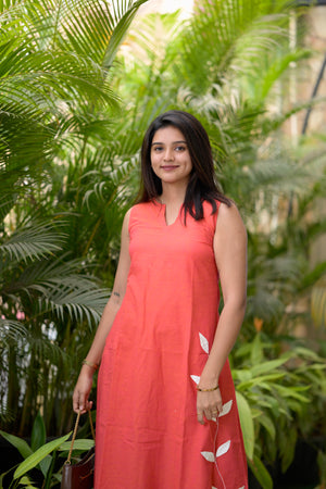 Each appliqué detail is lovingly hand-stitched, adding depth, charm, and a personal touch that machine work can’t replicate. Crafted on soft, breathable cotton flex, it keeps you cool and polished all day llong. It has 11 inch sleeves inside the kurta who don't prefer sleeveless