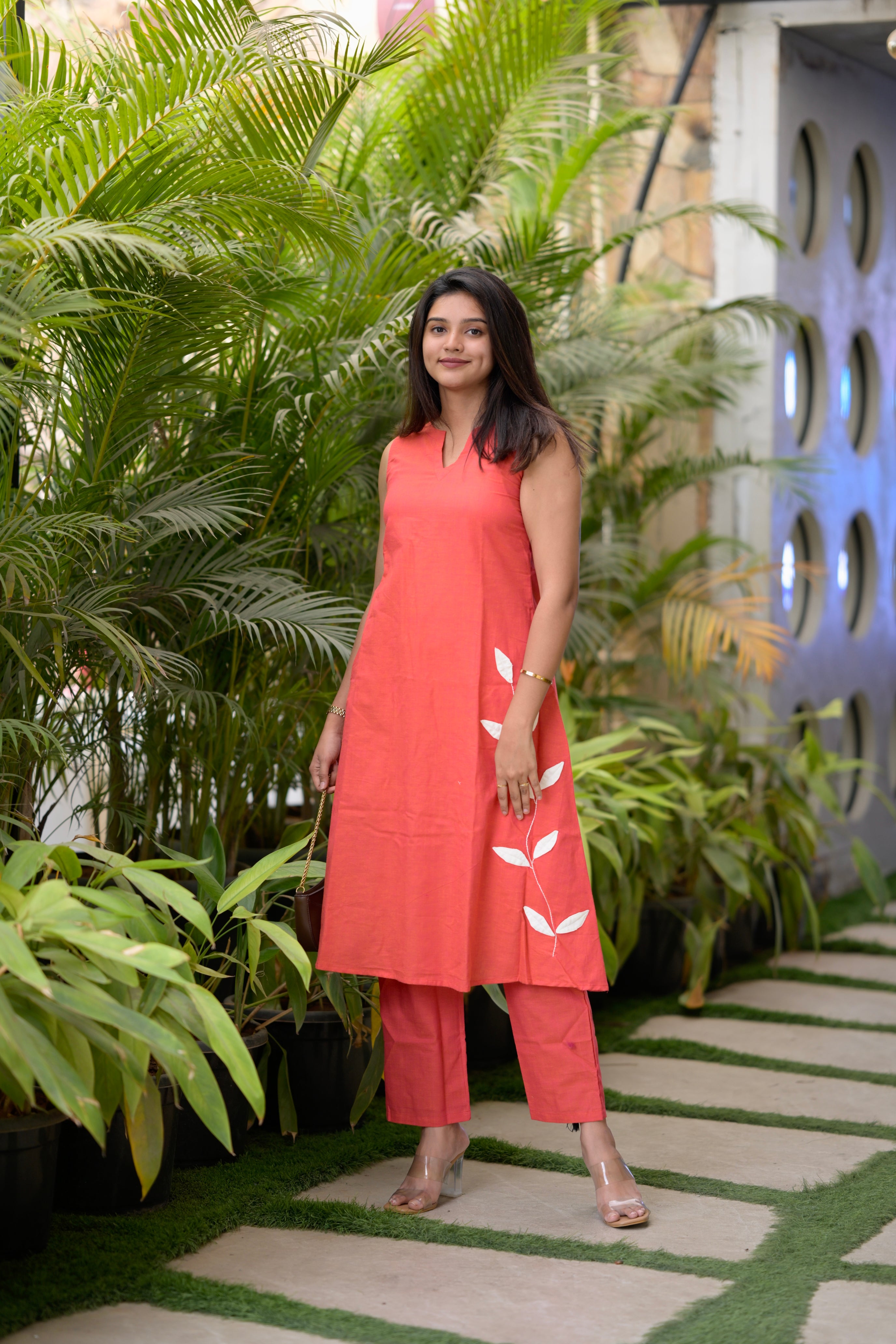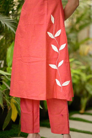 Savanna (peach)- Cotton flex co-ord set with appliqué work in peach