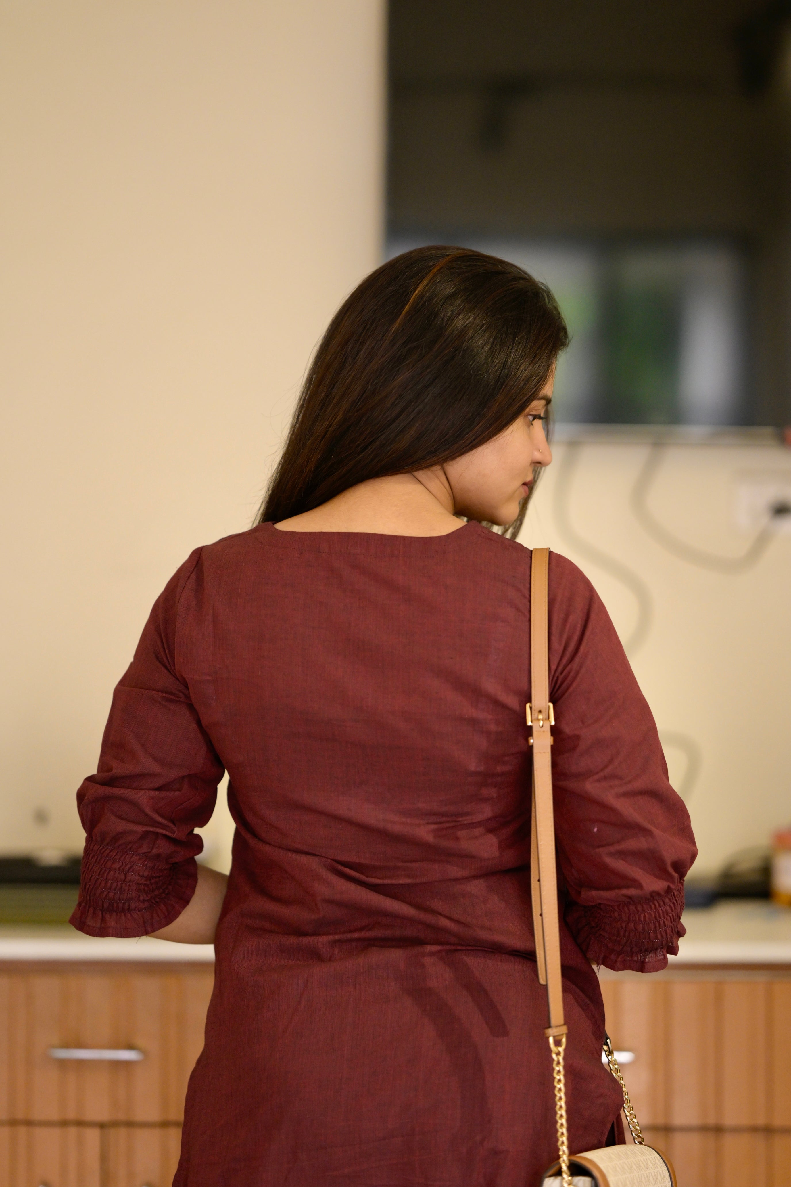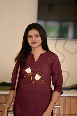Savanna (brown) - Cotton flex co-ord set with appliqué work in brown