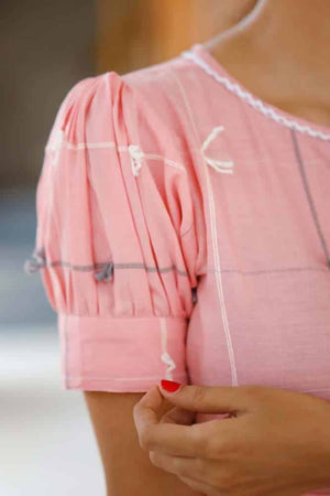 Senorita- handloom cotton with handwoven dori detaling in pink ( feeding friendly)