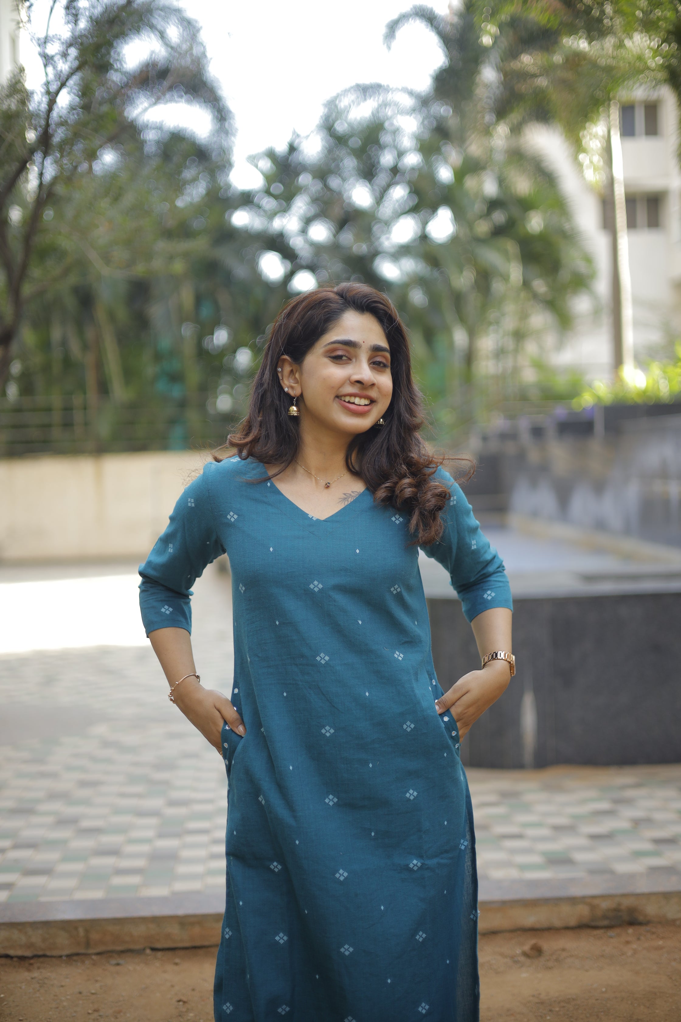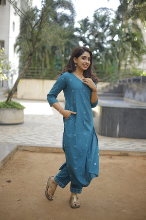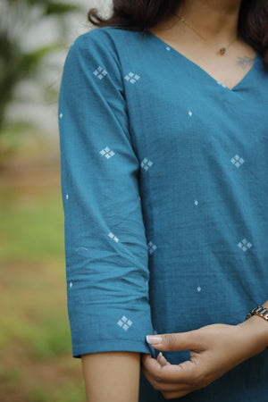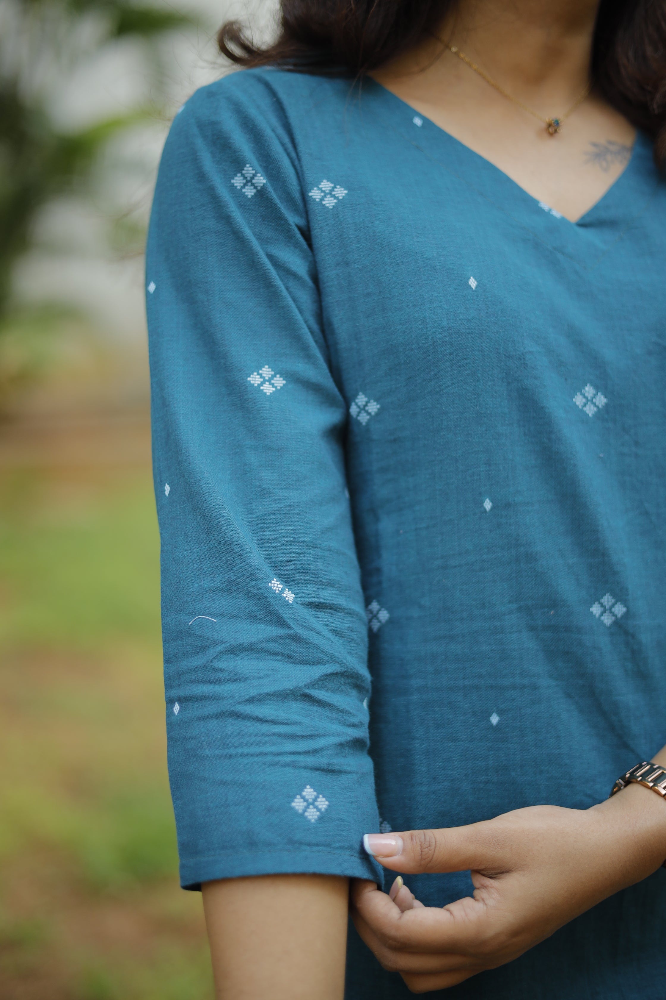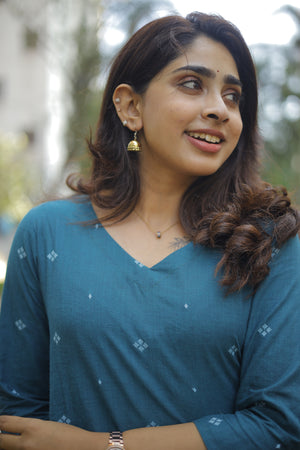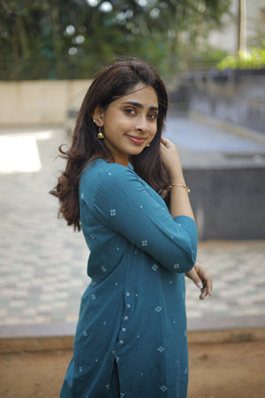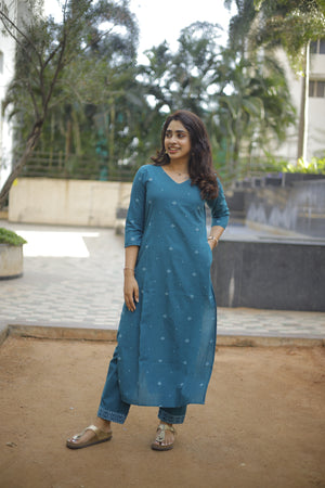 Shaili ( teal blue ) - handloom cotton kurta set in teal blue