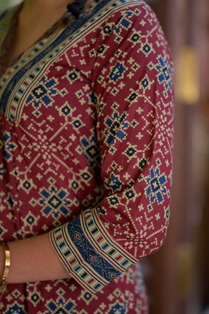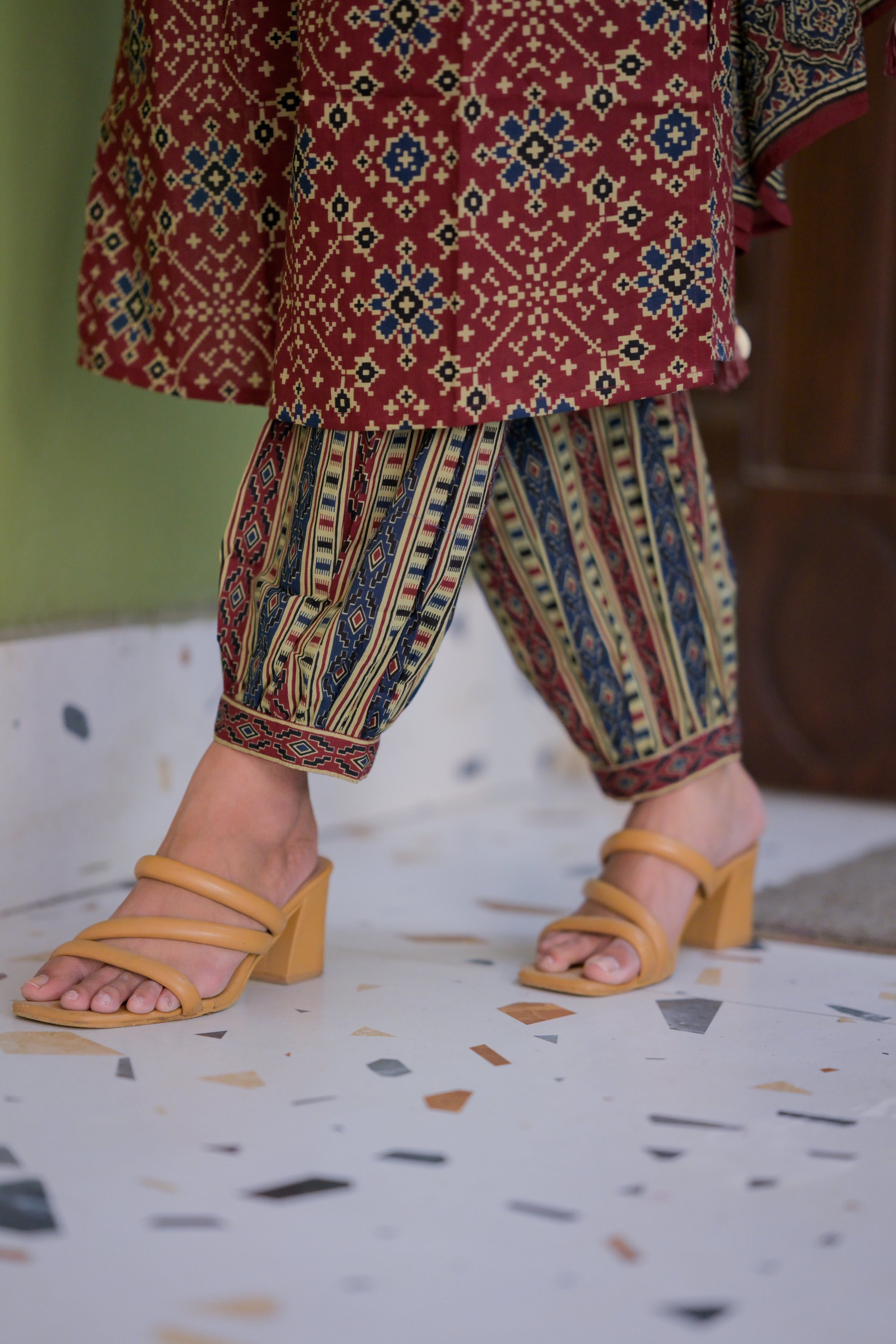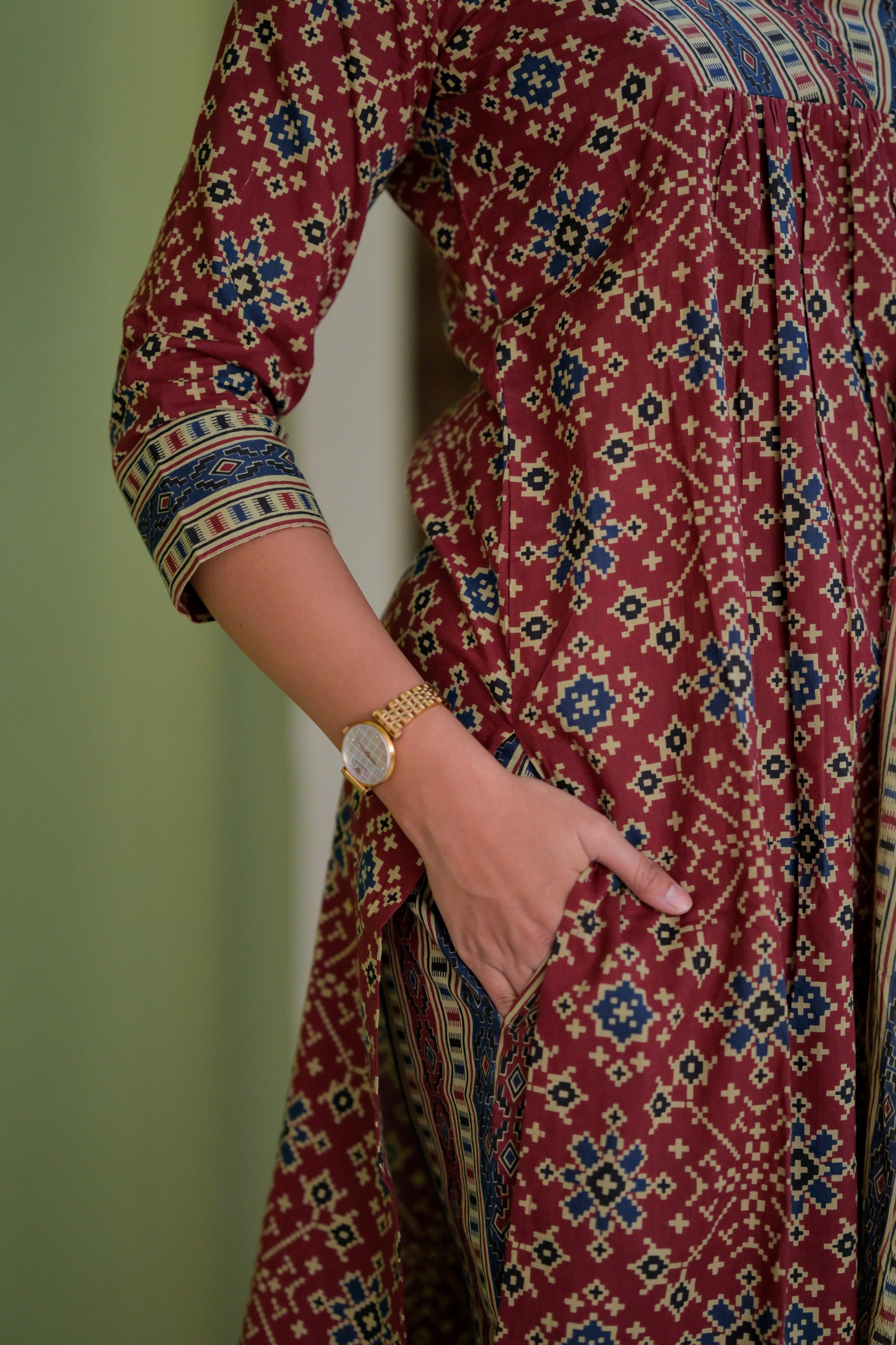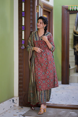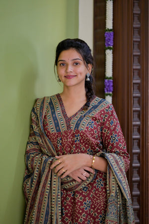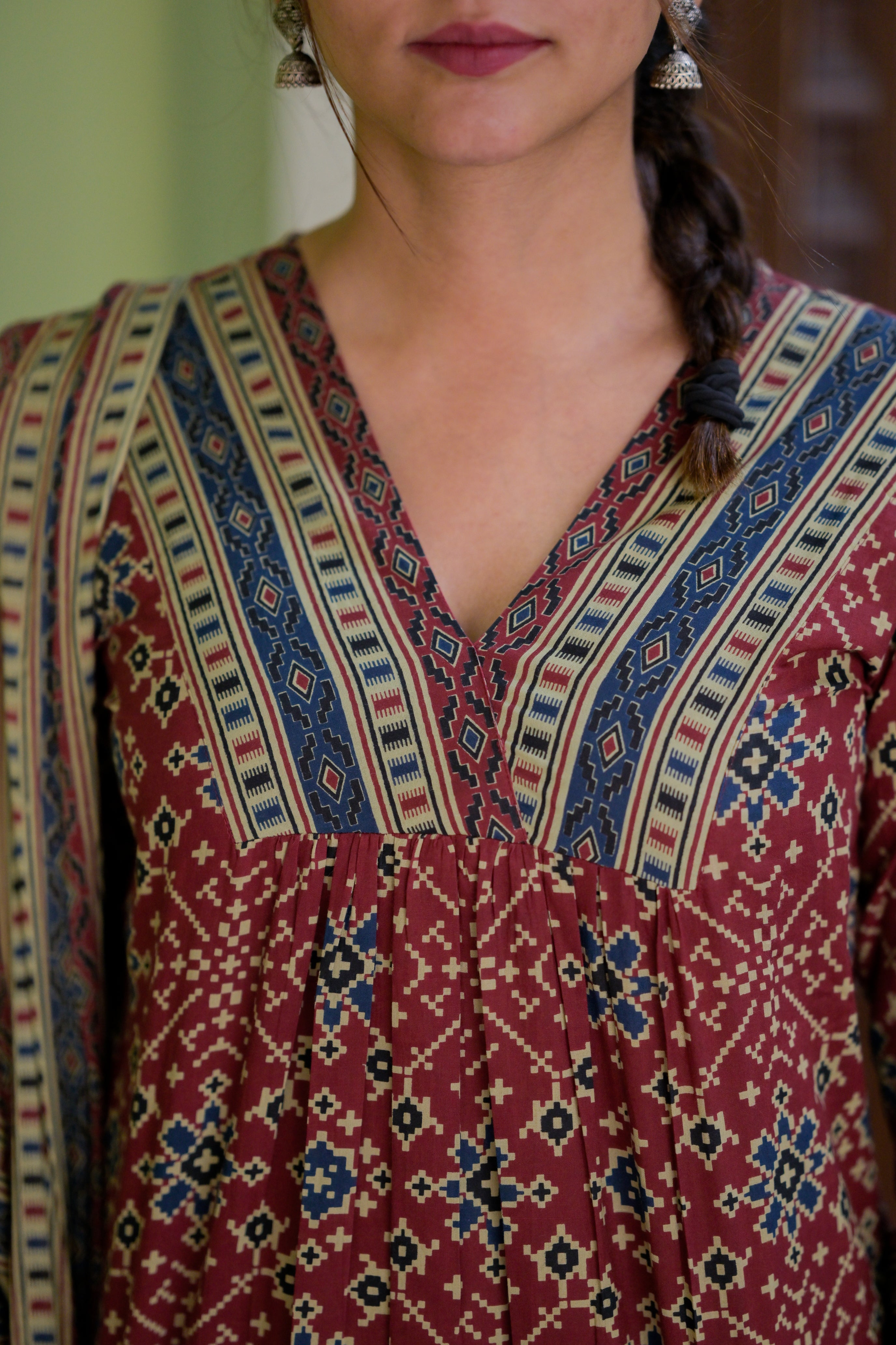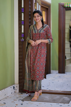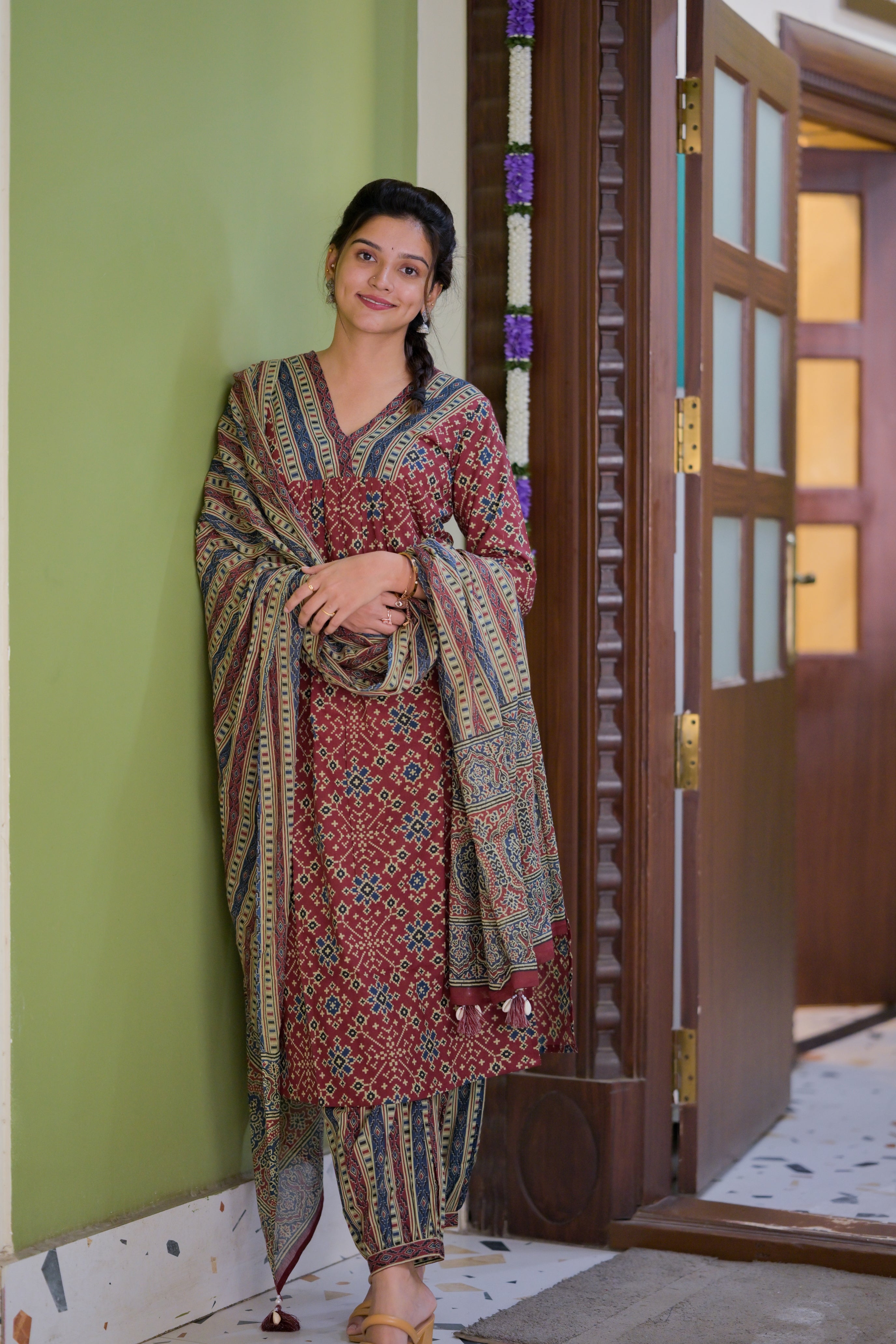 Shanmathi - ajrakh handblock printed suit set in maroon colour