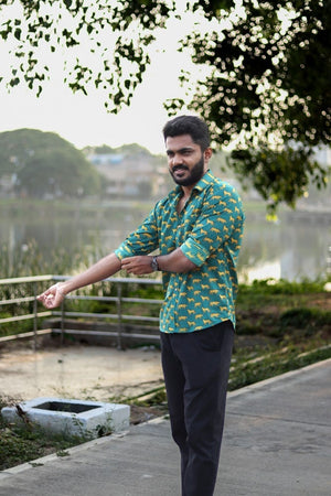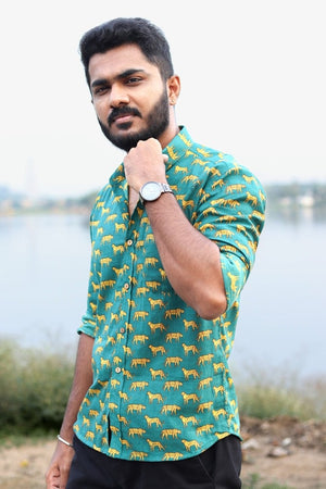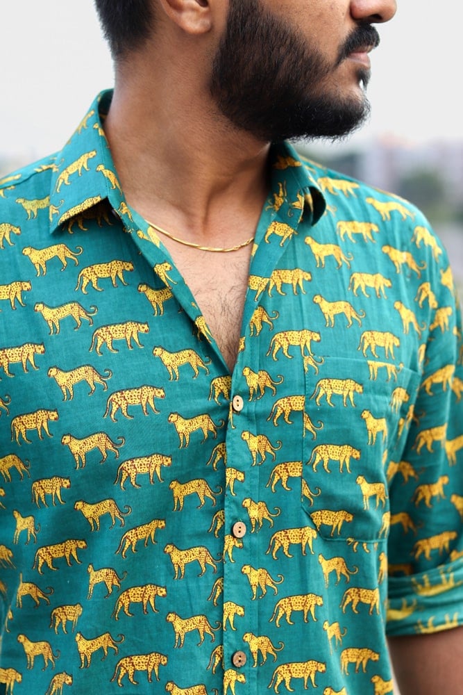 shirt - 1 - Cheetah handblock cotton printed shirt in blue