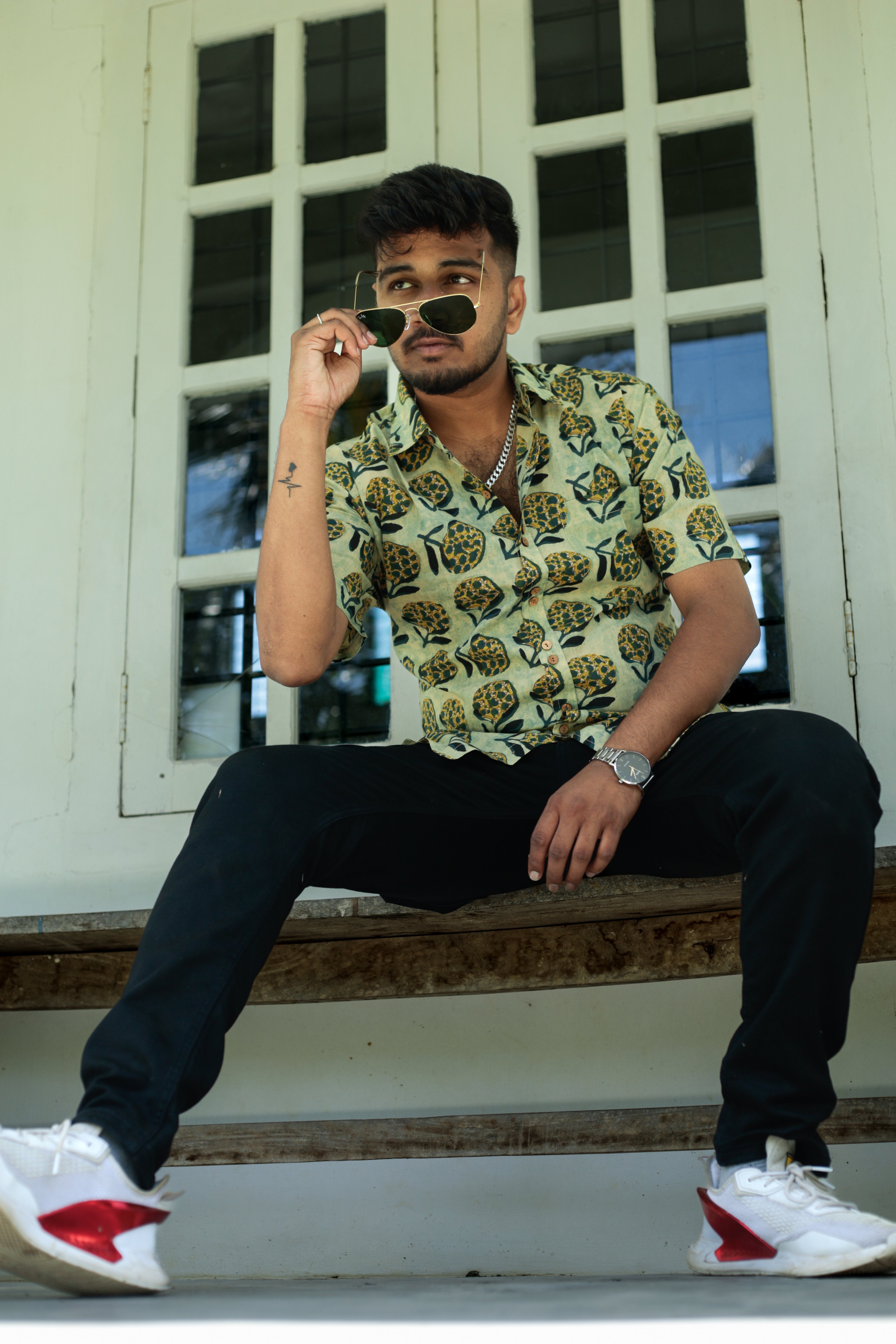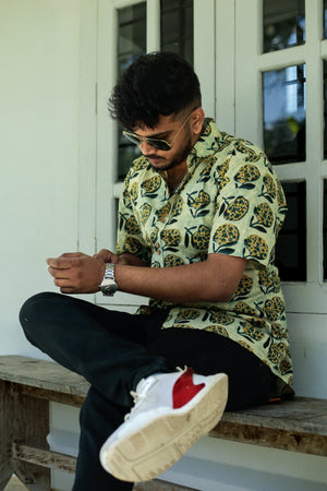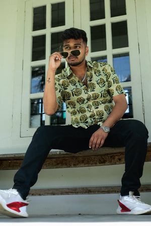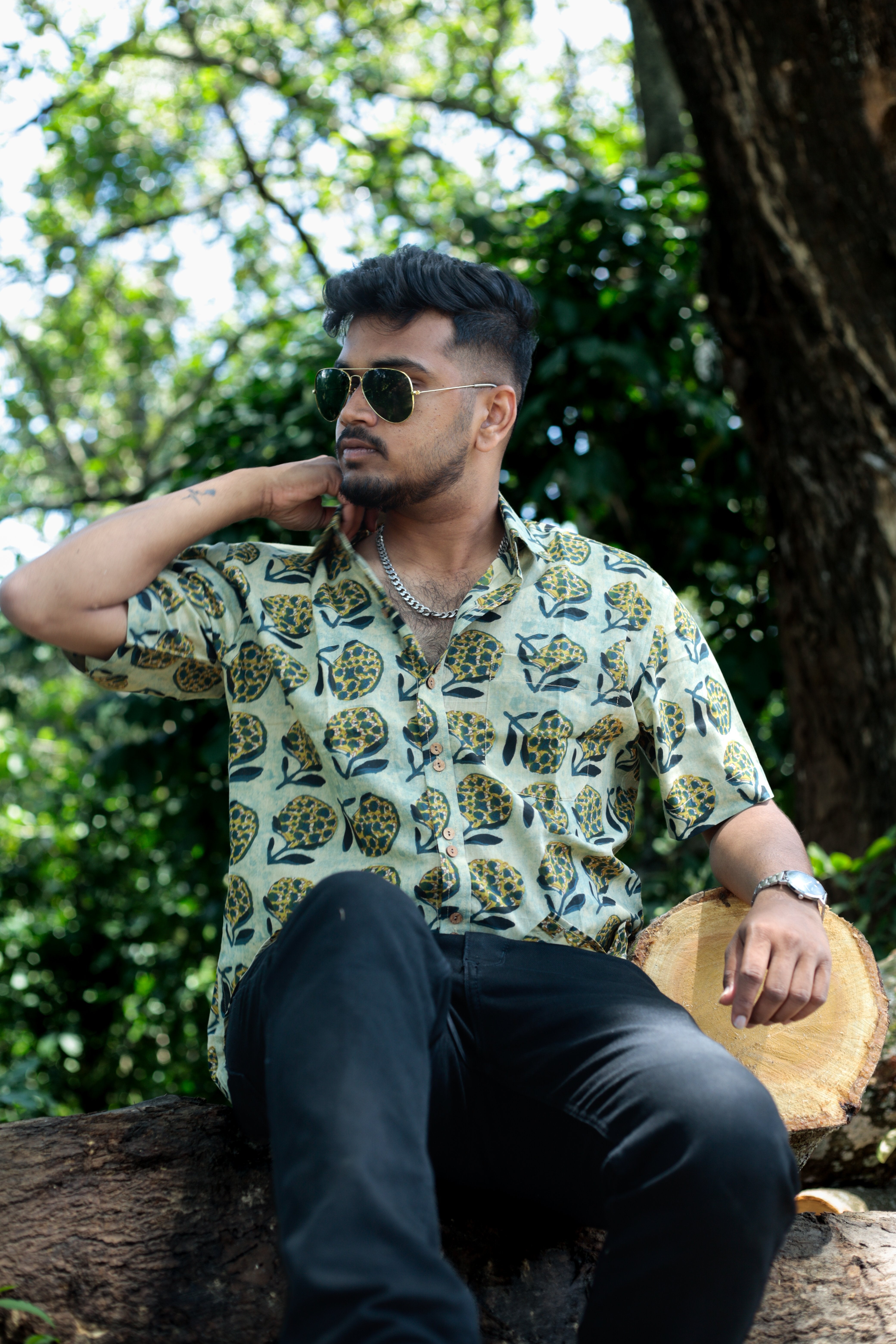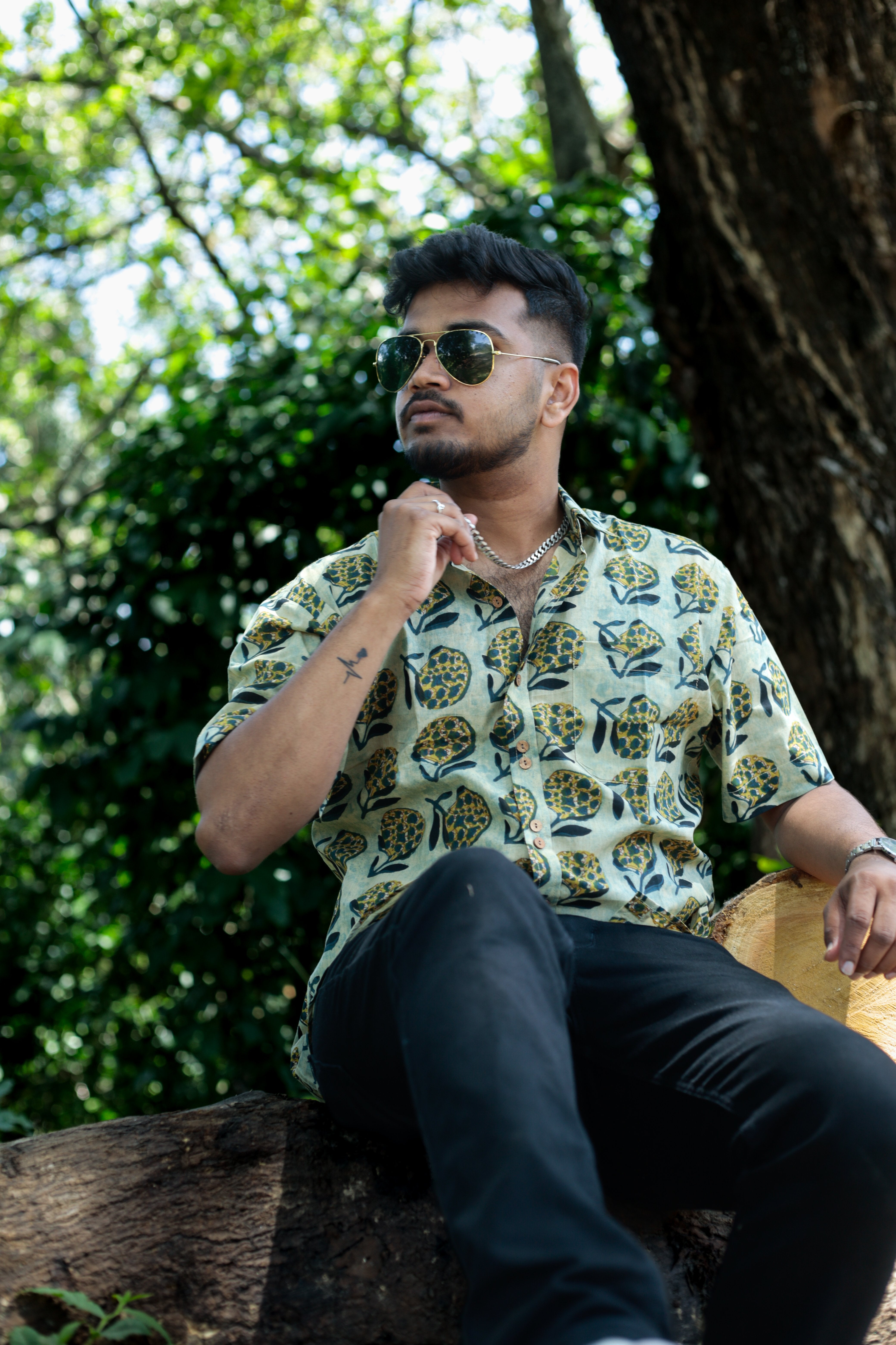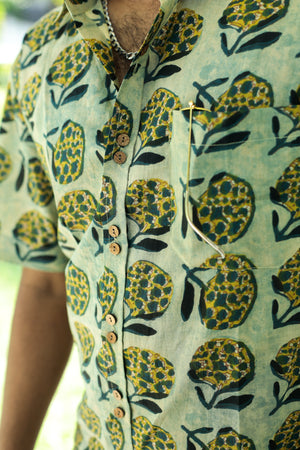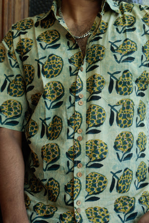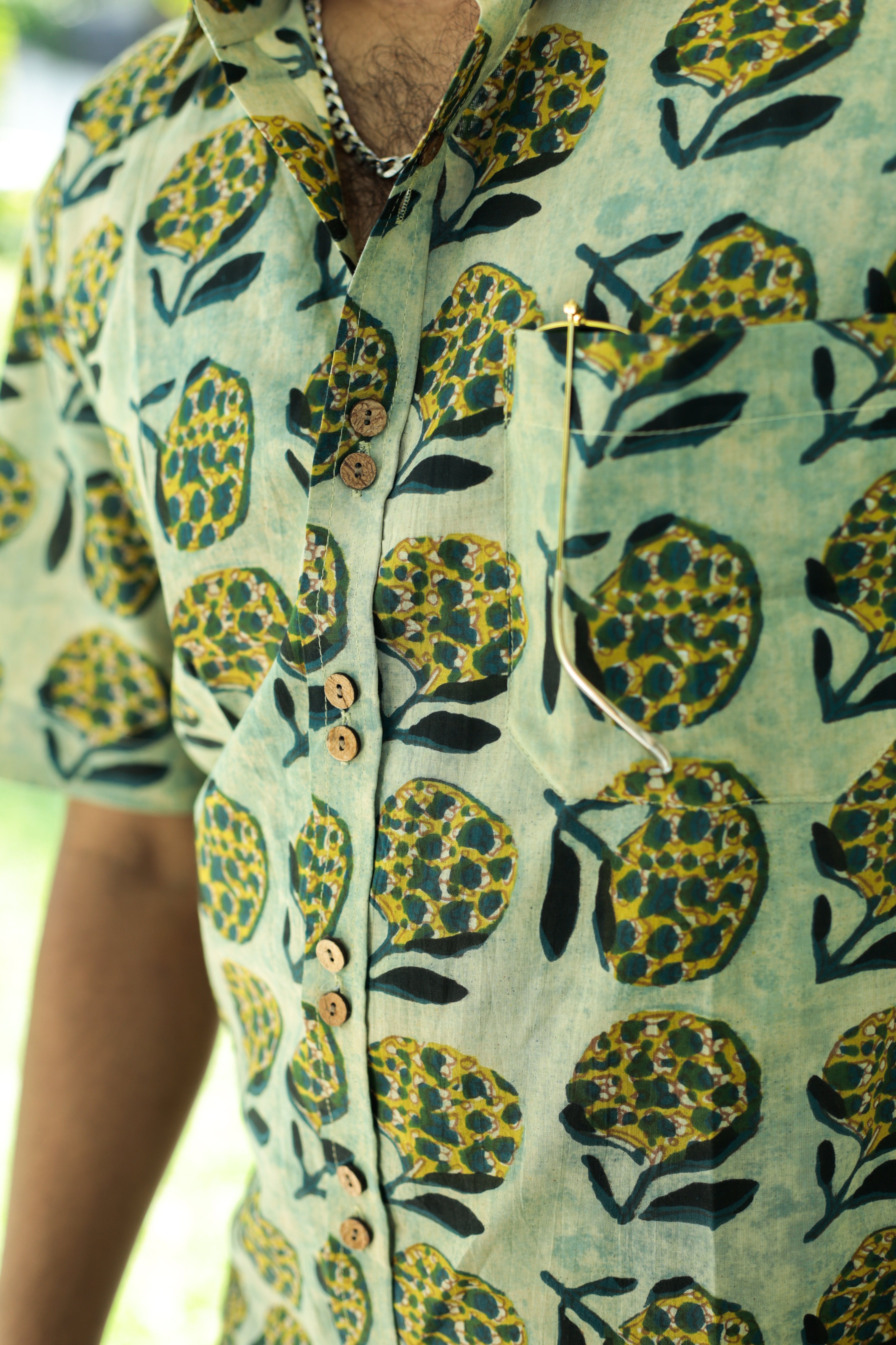 Shirt - 16 - handblock ajrakh motif printed organic cotton shirt in green
