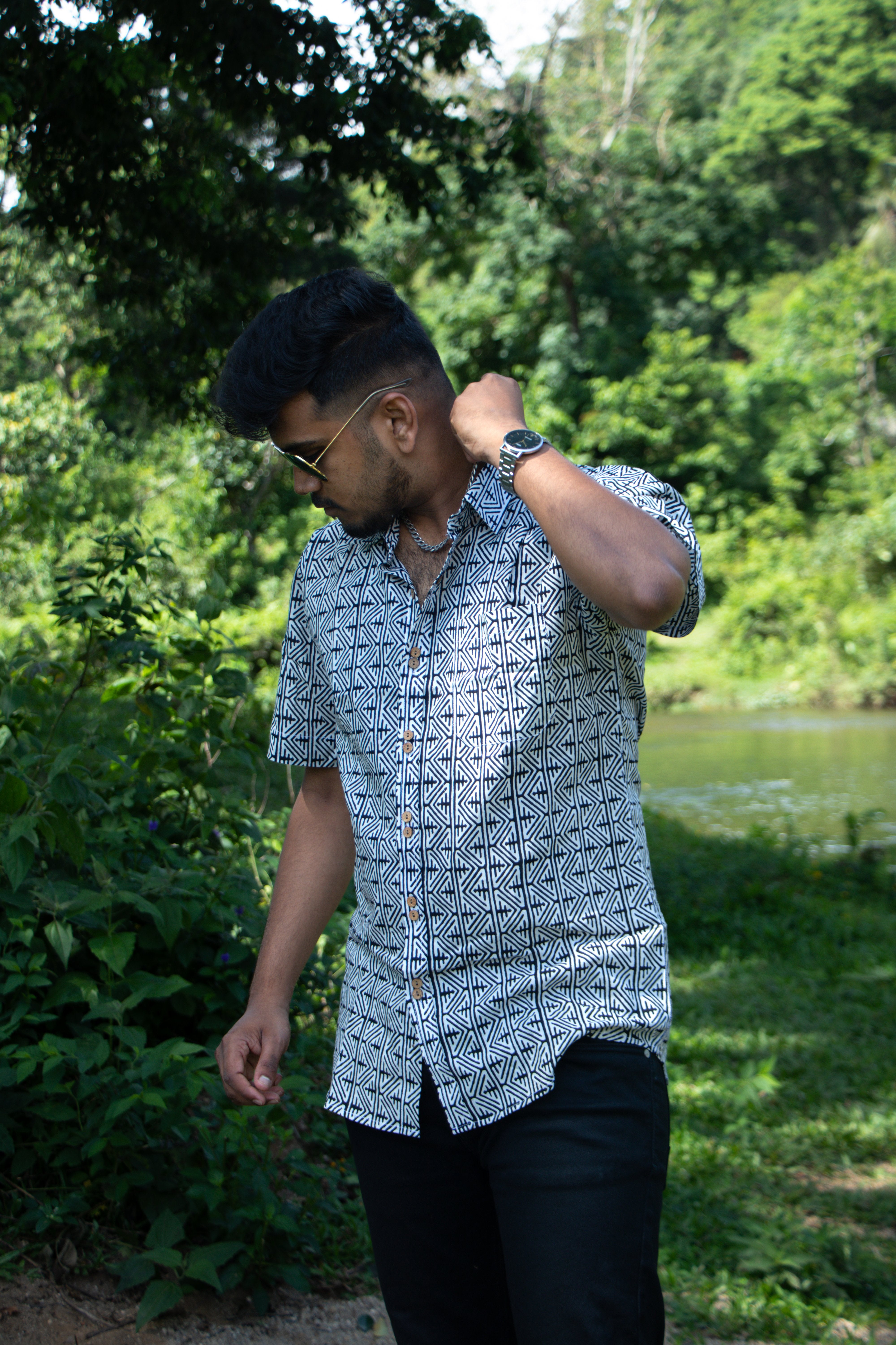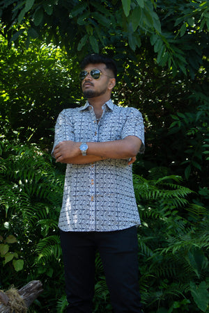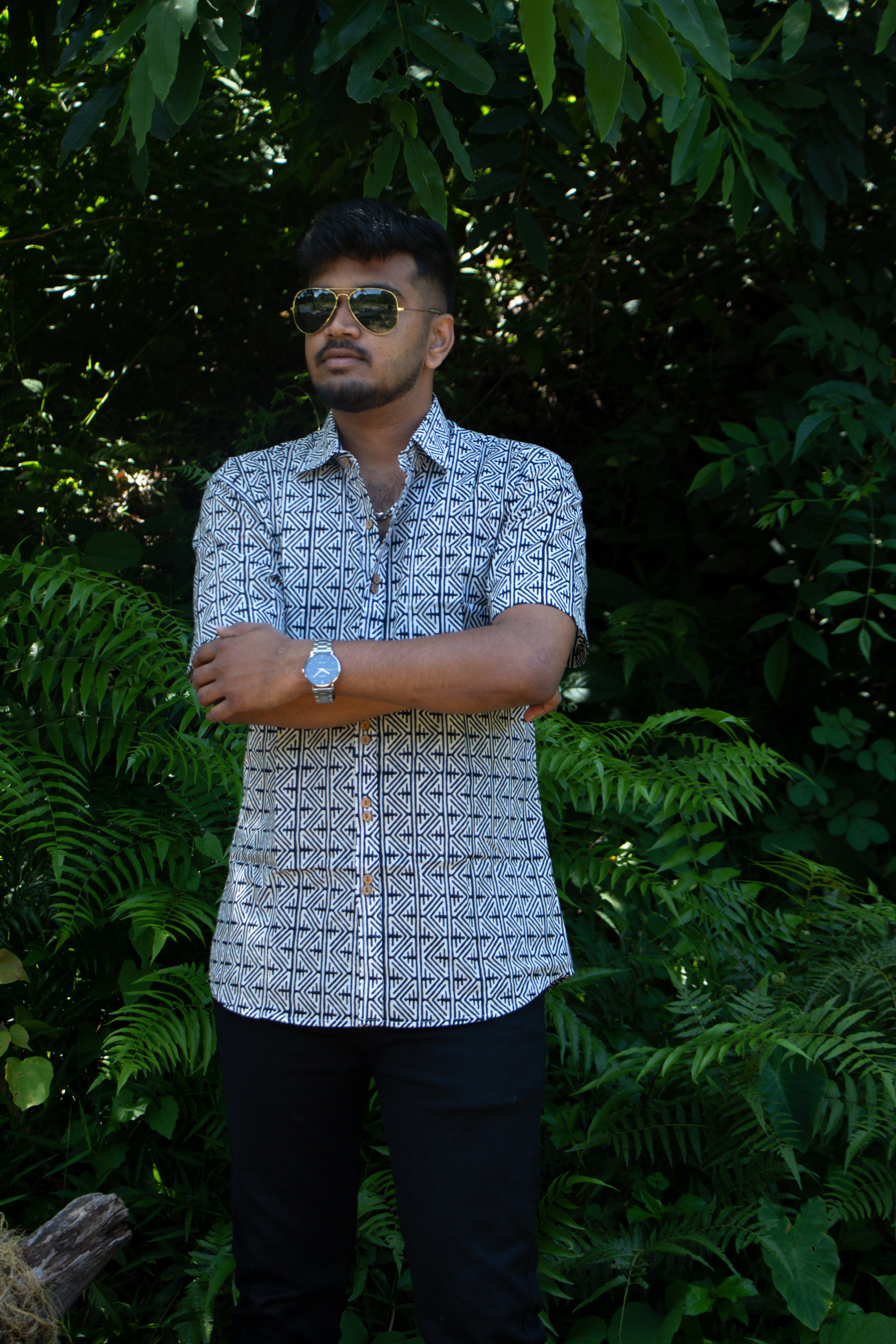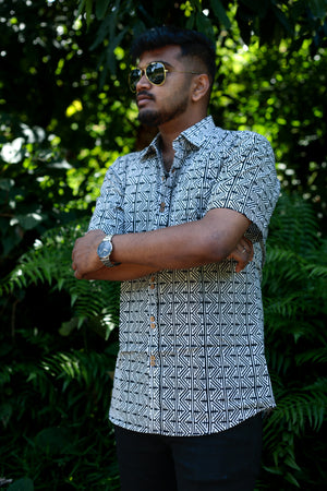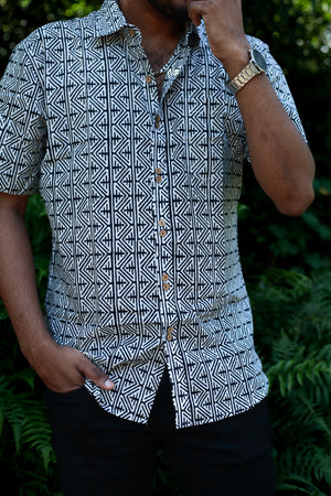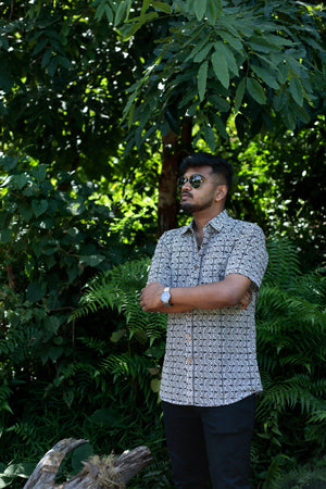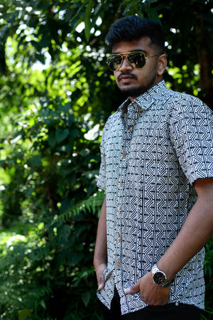 shirt - 19 - handblock abstract printed organic cotton shirt in black and white
