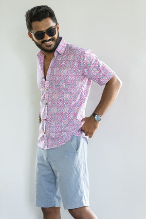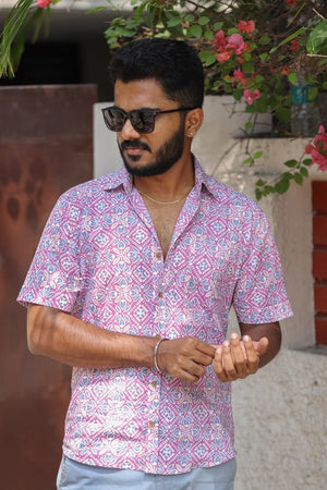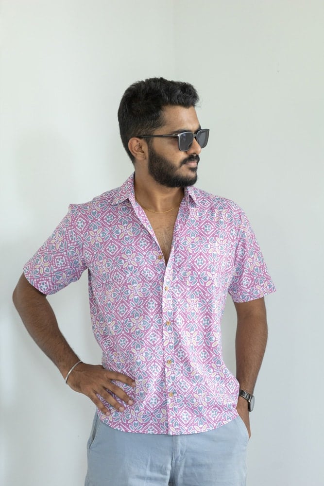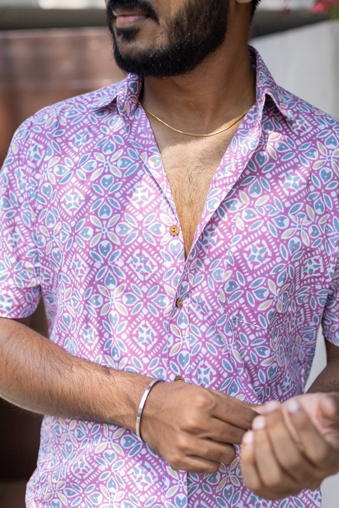 Shirt - 6 - handblock Abstract ajrakh dabu printed organic cotton shirt in lavander and pink