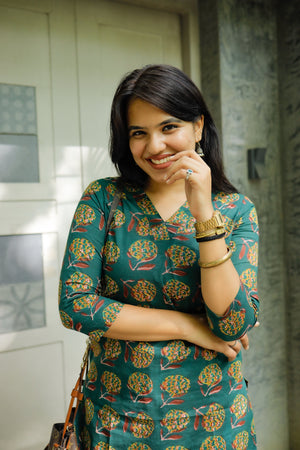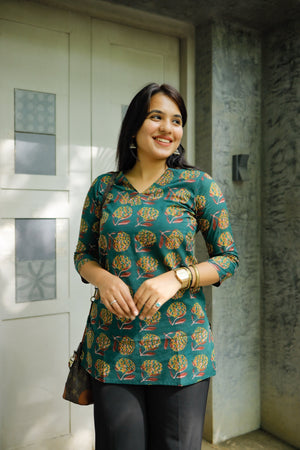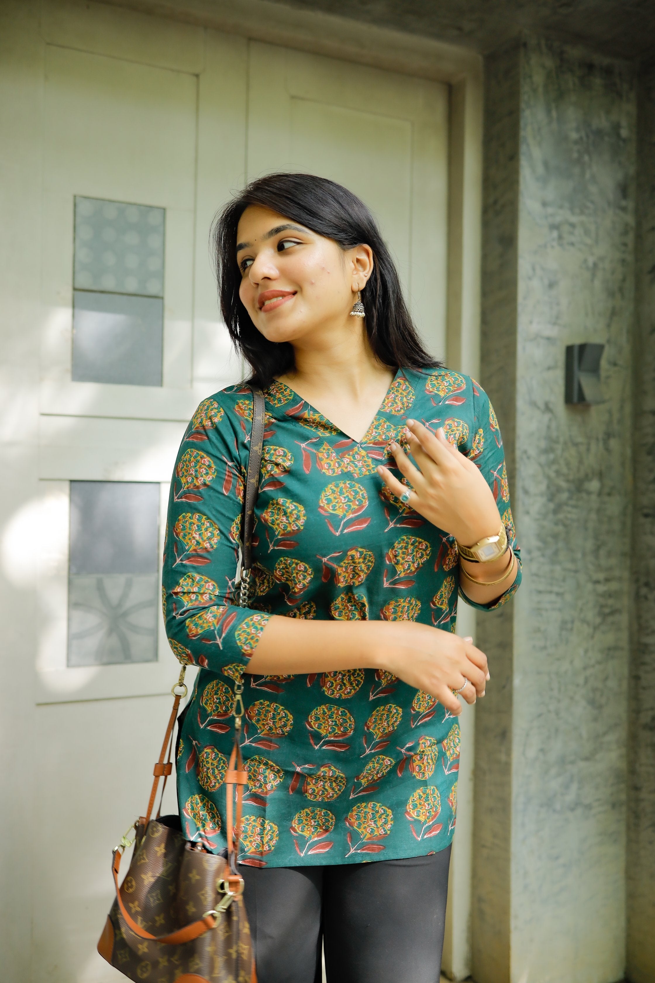 Short Kurti - 11 - Organic Cotton short kurti in dark green