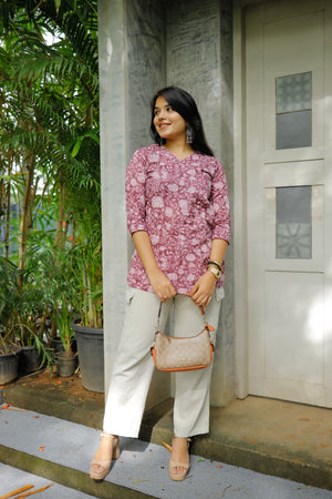 Short Kurti - 14 - Organic cotton short kurti in purple
