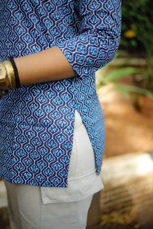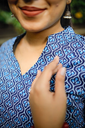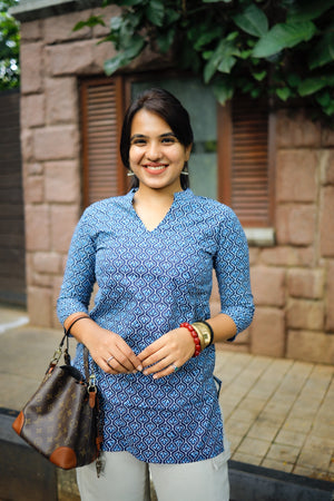 Short Kurti - 18 - Organic cotton short kurti in indigo