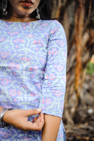 Short Kurti - 19 - Organic cotton short kurti in denim blue