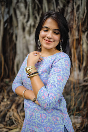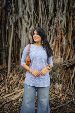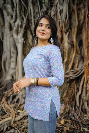 Comfy and super chic cotton short kurti in classy and cute prints with smart neck and sleeve pattern. Perfect to pair it with jeans / culottes / trousers. Organic cotton is used making it the most apt for this summer.