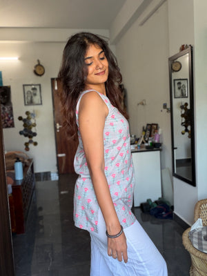 Comfy and super chic cotton short kurti in classy and cute prints with smart neck and sleeve pattern. Perfect to pair it with jeans / culottes / trousers. Organic cotton is used making it the most apt for this summer.
