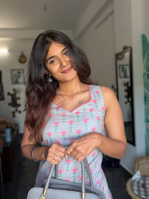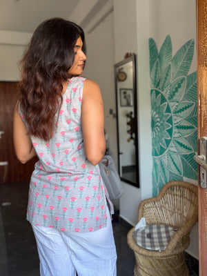 Short Kurti 23 - Organic cotton short kurti in brownish grey