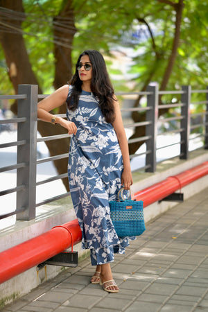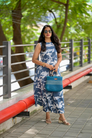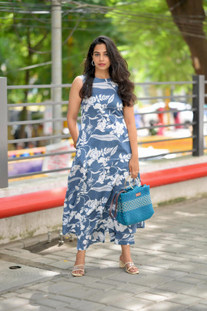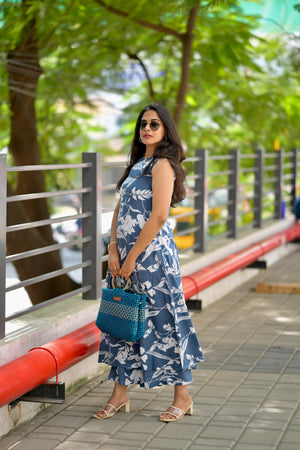 Taara - dark grey - halter neck A line cotton kurta set in dark grey