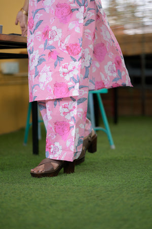 Taara(baby pink) - floral handblock organic cotton kurta set in baby pink
