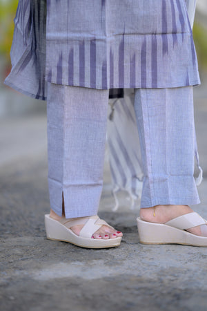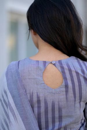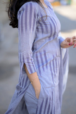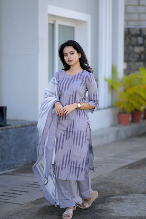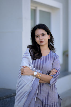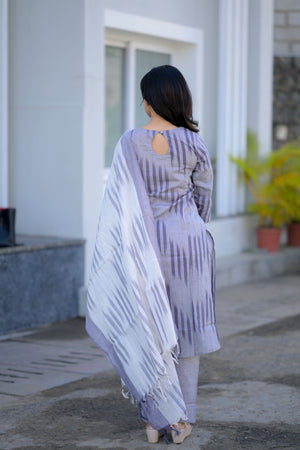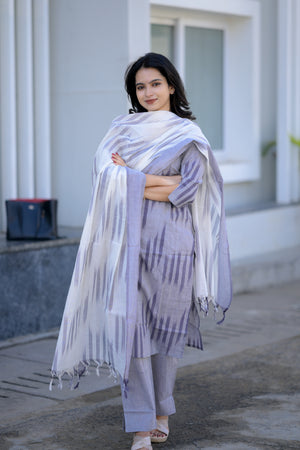 Thendral ( grey ) - ikkat handloom cotton suit set with dupatta in grey colour