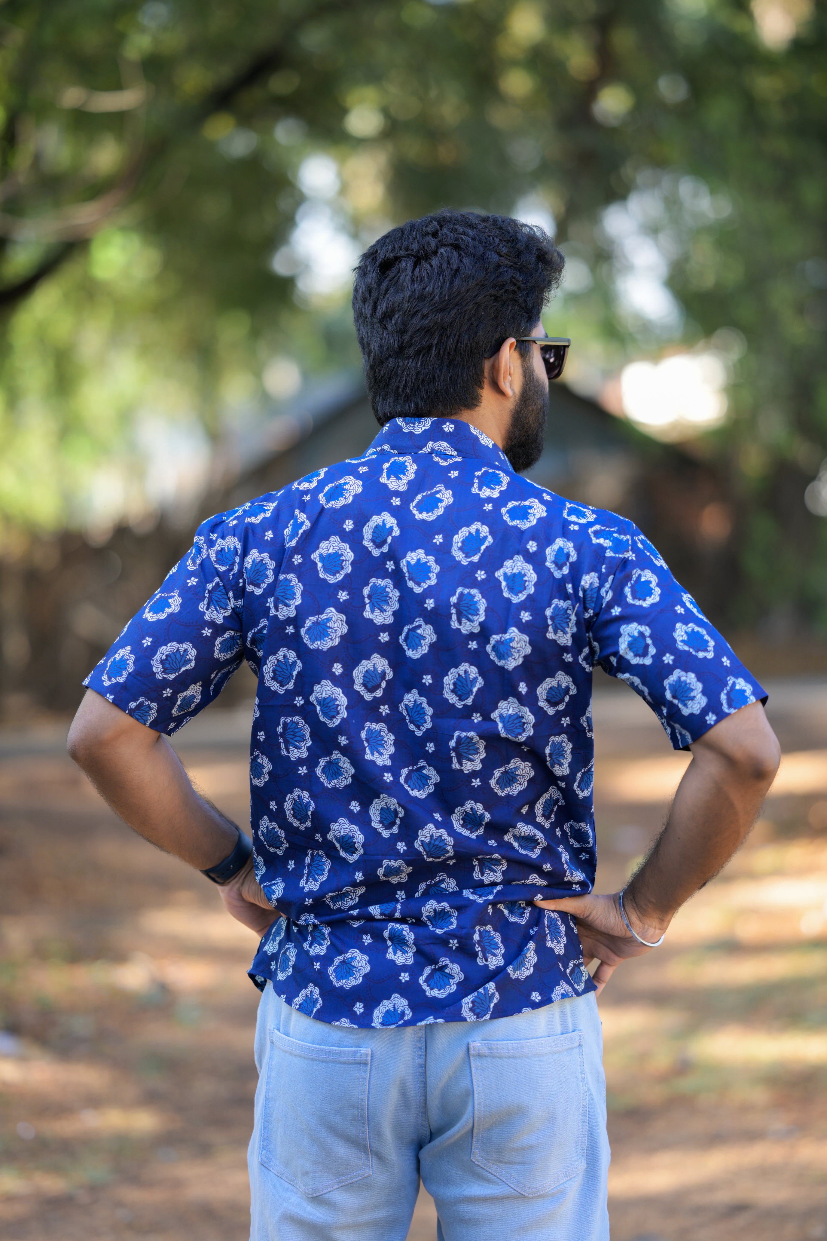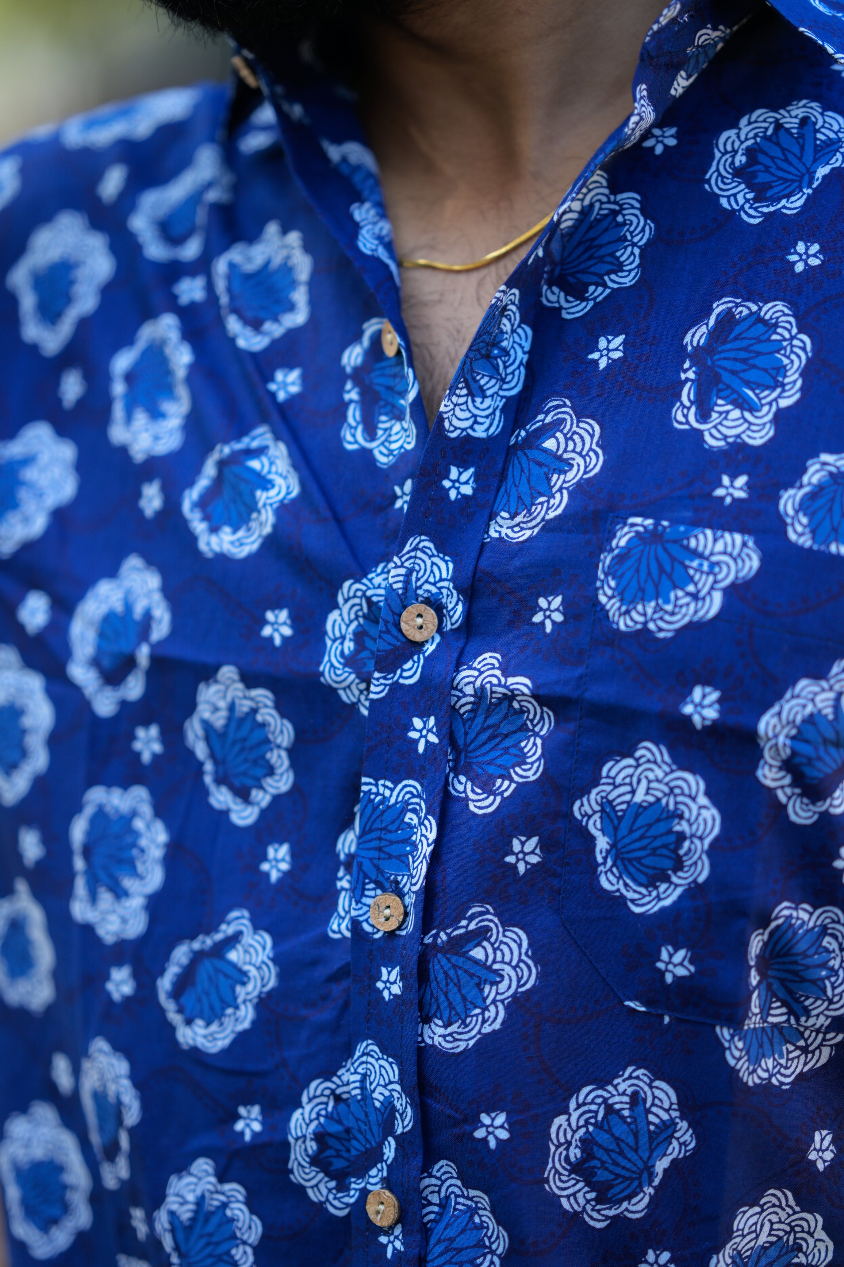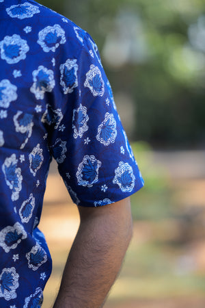 Shirt -21 - floral handblock printed organic cotton shirt in blue