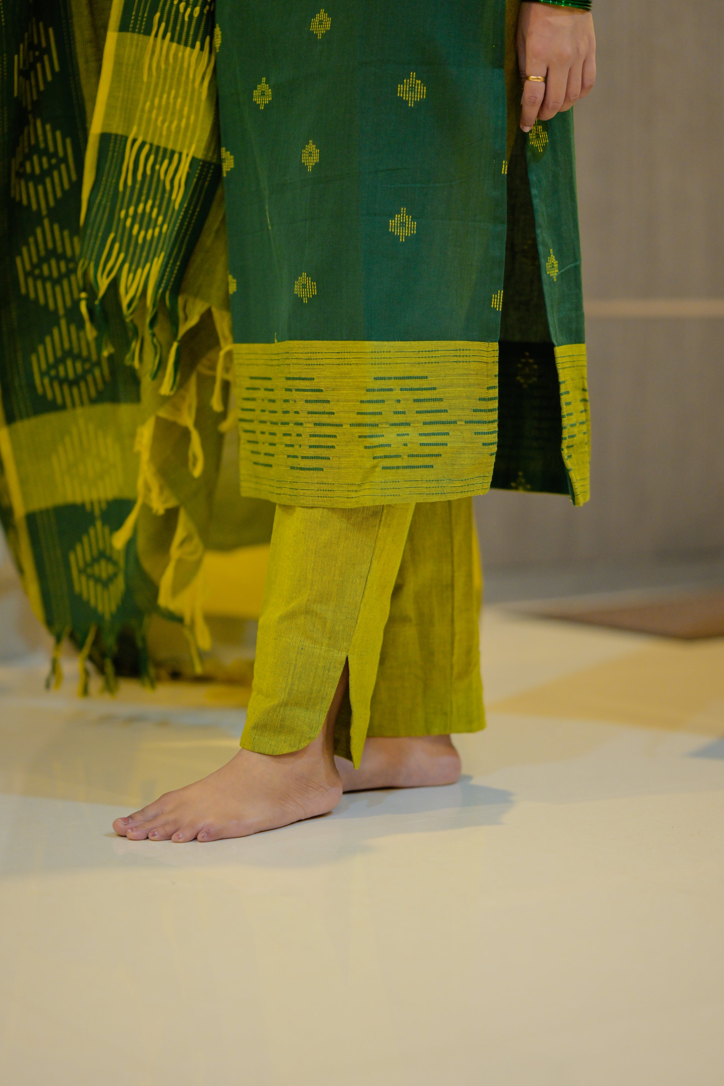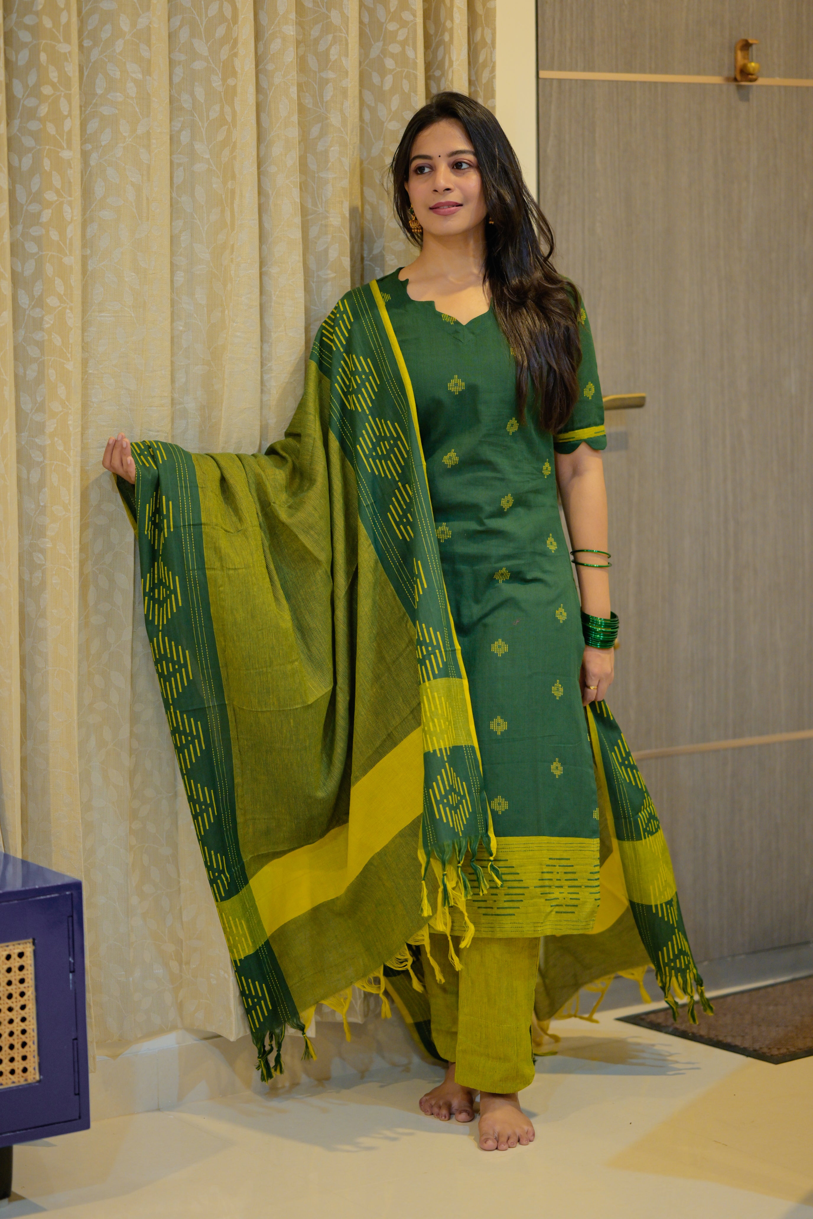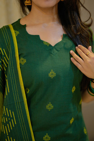 Vasundhra (green) - handloom cotton jamdhani suit set in green