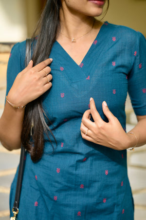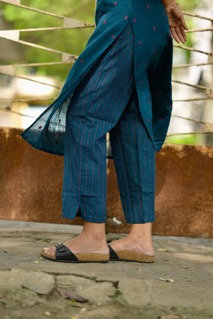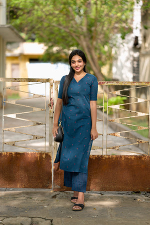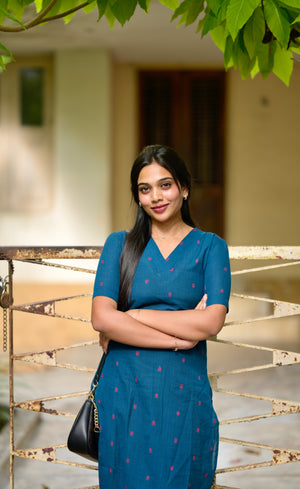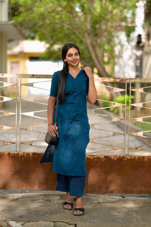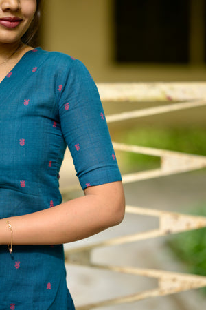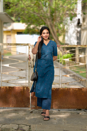 Vedhika ( blue ) - handloom cotton kurta set in blue and red