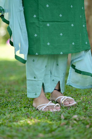 Vidya (green) - handloom cotton suit set with chiffon dupatta in green colour